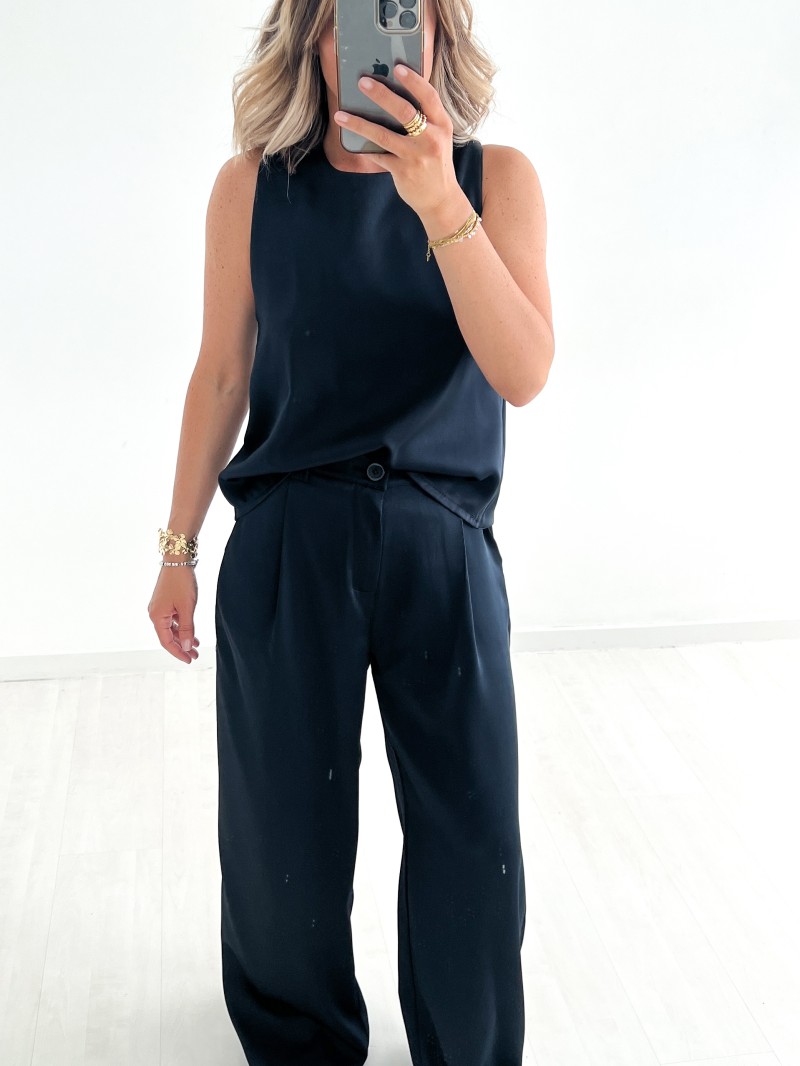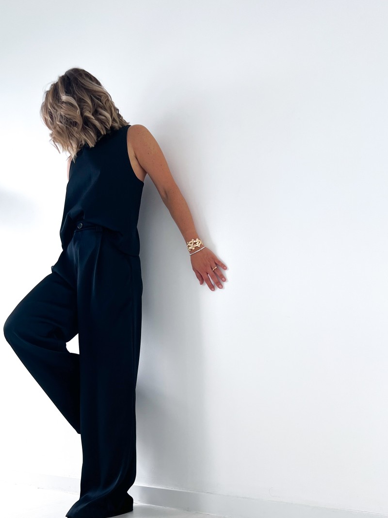 Entscheiden Sie sich für Eleganz mit der Hose Venezia, die in Italien aus 100 % Polyester hergestellt wird. Ihr fließender Schnitt, die hohe Taille und die raffinierte Farbpalette (bläuliches Schwarz, Champagner, Marineblau, Salbei, Hellrosa, Rostrot) machen sie zu einem vielseitigen Kleidungsstück, das sich ideal für das Büro oder einen eleganten Abend eignet. Erhältlich in den Größen S bis L, passt er perfekt zur Bluse Versatile Venezia und sorgt für einen harmonischen und raffinierten Look.