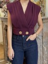 Das schicke und strukturierte Olivia Plissee Blusentop lässt den ärmellosen Blazer in einer femininen und modernen Version neu aufleben. Der überkreuzte Schnitt betont die Silhouette, während die goldenen Knöpfe einen eleganten und raffinierten Touch verleihen. Es ist in mehreren intensiven Farben erhältlich und kann sowohl mit einer Anzughose als auch mit einer Jeans für einen lässigen Look kombiniert werden.