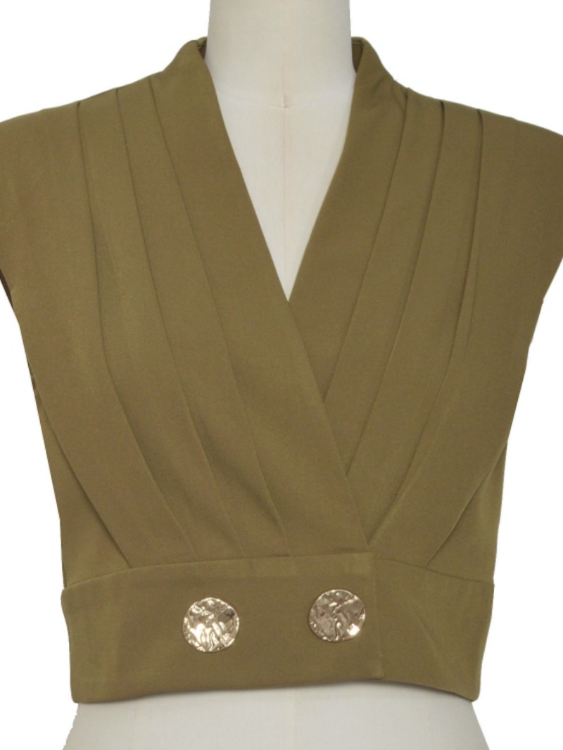 Das schicke und strukturierte Olivia Plissee Blusentop lässt den ärmellosen Blazer in einer femininen und modernen Version neu aufleben. Der überkreuzte Schnitt betont die Silhouette, während die goldenen Knöpfe einen eleganten und raffinierten Touch verleihen. Es ist in mehreren intensiven Farben erhältlich und kann sowohl mit einer Anzughose als auch mit einer Jeans für einen lässigen Look kombiniert werden.