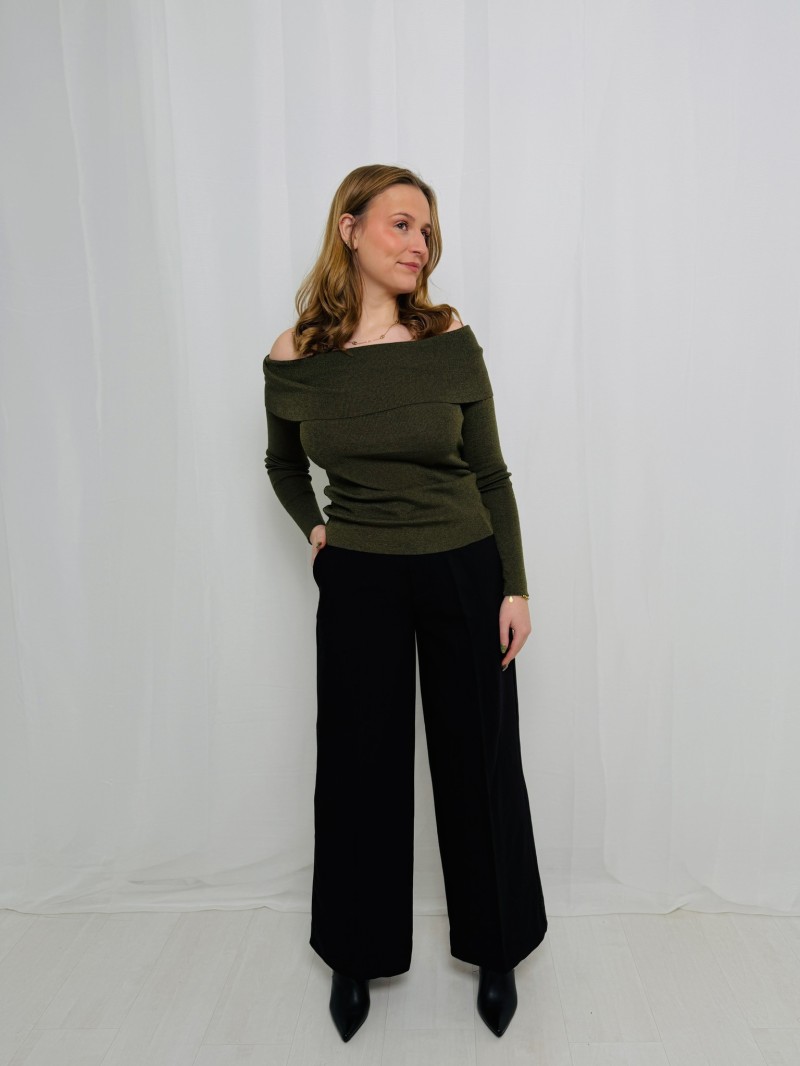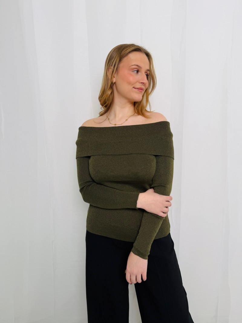 Alicia Pullover - Offene Schultern und glitzernde Maschenware