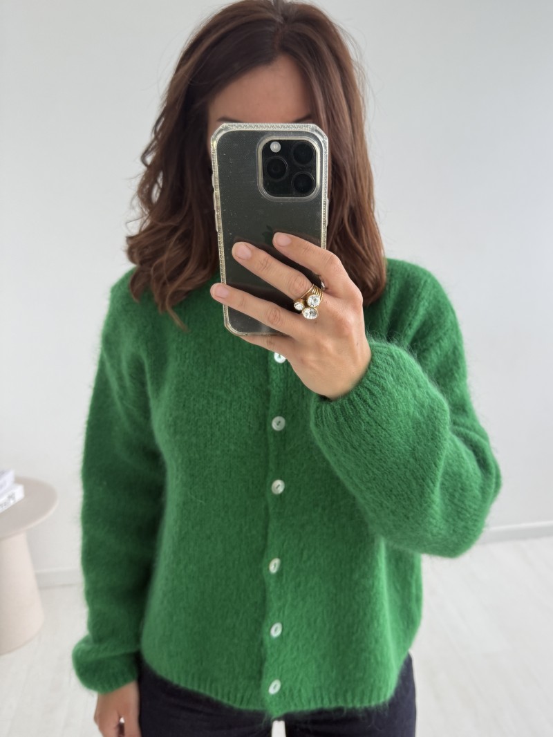 Die Strickjacke Eline ist ein bequemes und vielseitiges Modell, das sich für verschiedene Anlässe eignet. Ihr klassisches Design mit Rundhalsausschnitt und einer Reihe einfacher Knöpfe auf der Vorderseite macht sie zu einem eleganten und leicht zu tragenden Kleidungsstück. Diese Weste ist aus einem weichen, angenehmen Material gefertigt und bietet den ganzen Tag über optimalen Tragekomfort. Sie ist in einer großen Auswahl an Farben erhältlich, sodass sie sich leicht mit anderen Kleidungsstücken aus Ihrer Garderobe kombinieren lässt. Dank ihrer Einheitsgröße und ihrem leicht weiten Schnitt passt sie sich verschiedenen Körperformen an und ist somit eine praktische und schicke Wahl für jede Jahreszeit.