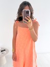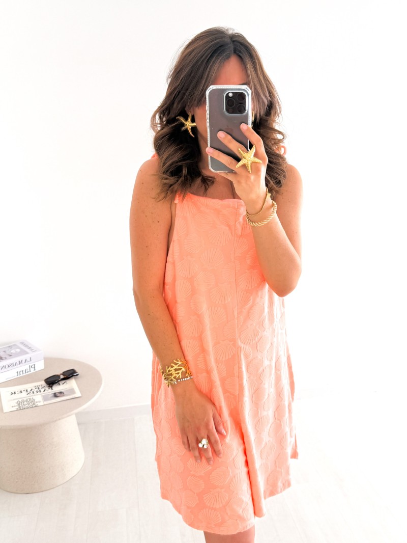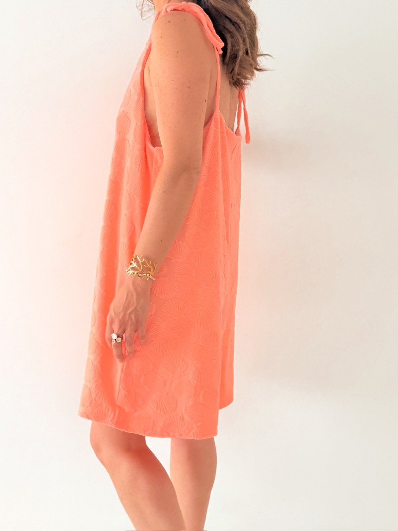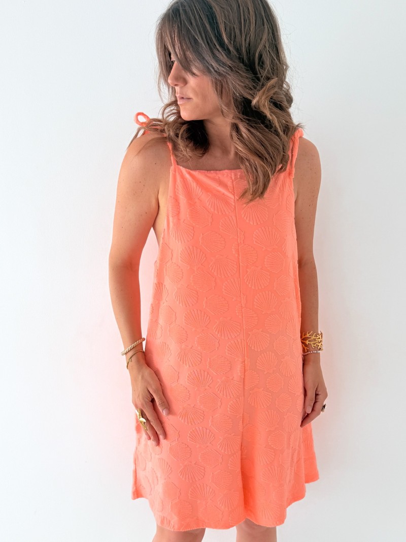 Ein fließender, leichter Schnitt, Bindebänder und ein hübsches Muschelreliefmuster auf dem gesamten Kleidungsstück: Dieser Shorts-Overall ist perfekt für Sommertage. Sein bequemer Stoff und seine weite Passform sorgen für einen hohen Tragekomfort.