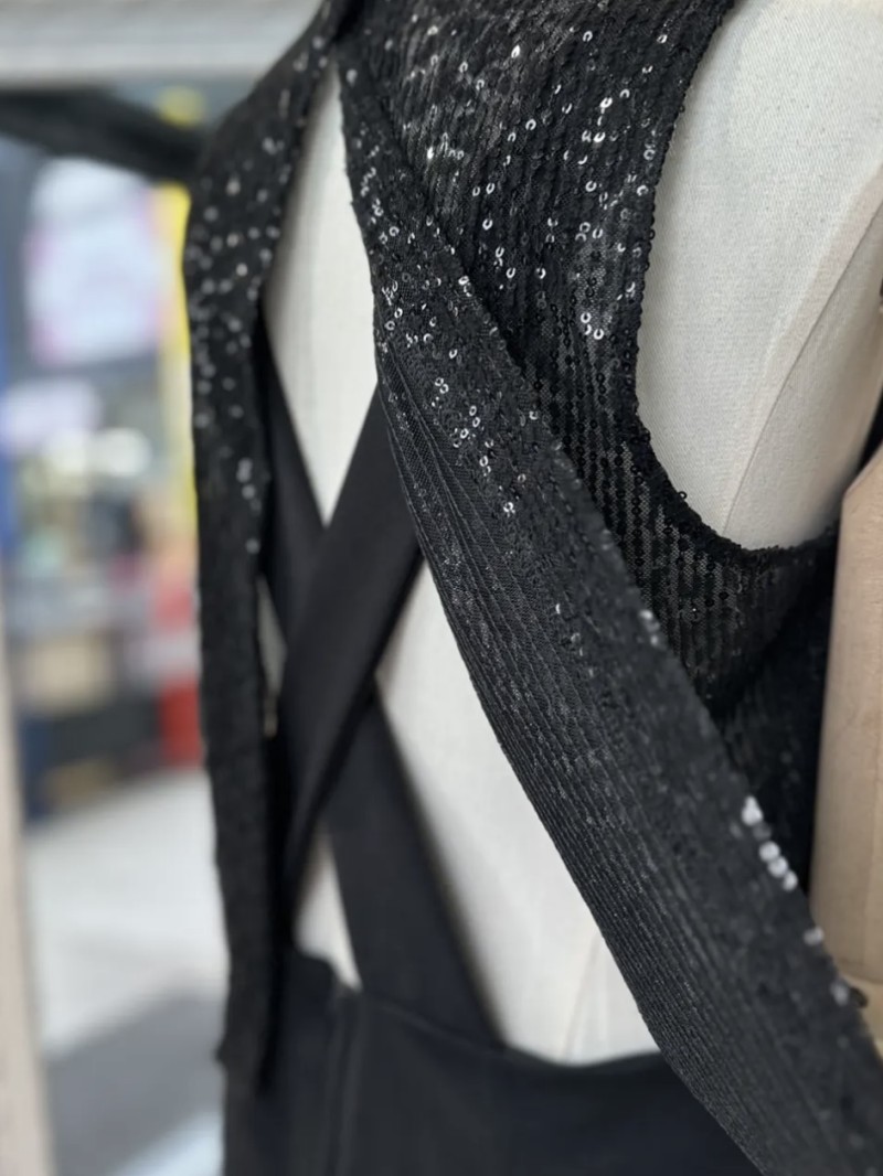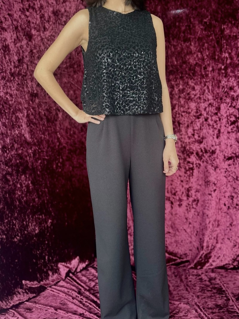 - Ärmelloses, vollständig mit Pailletten besetztes Oberteil