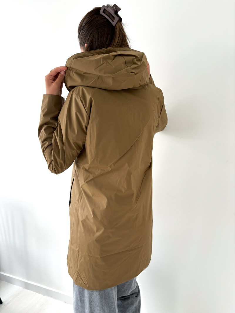 - Lange, gefütterte, wasserdichte Jacke für die Übergangszeit