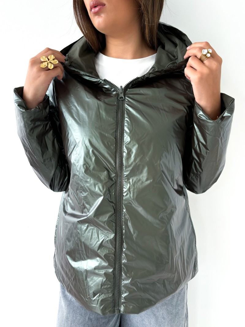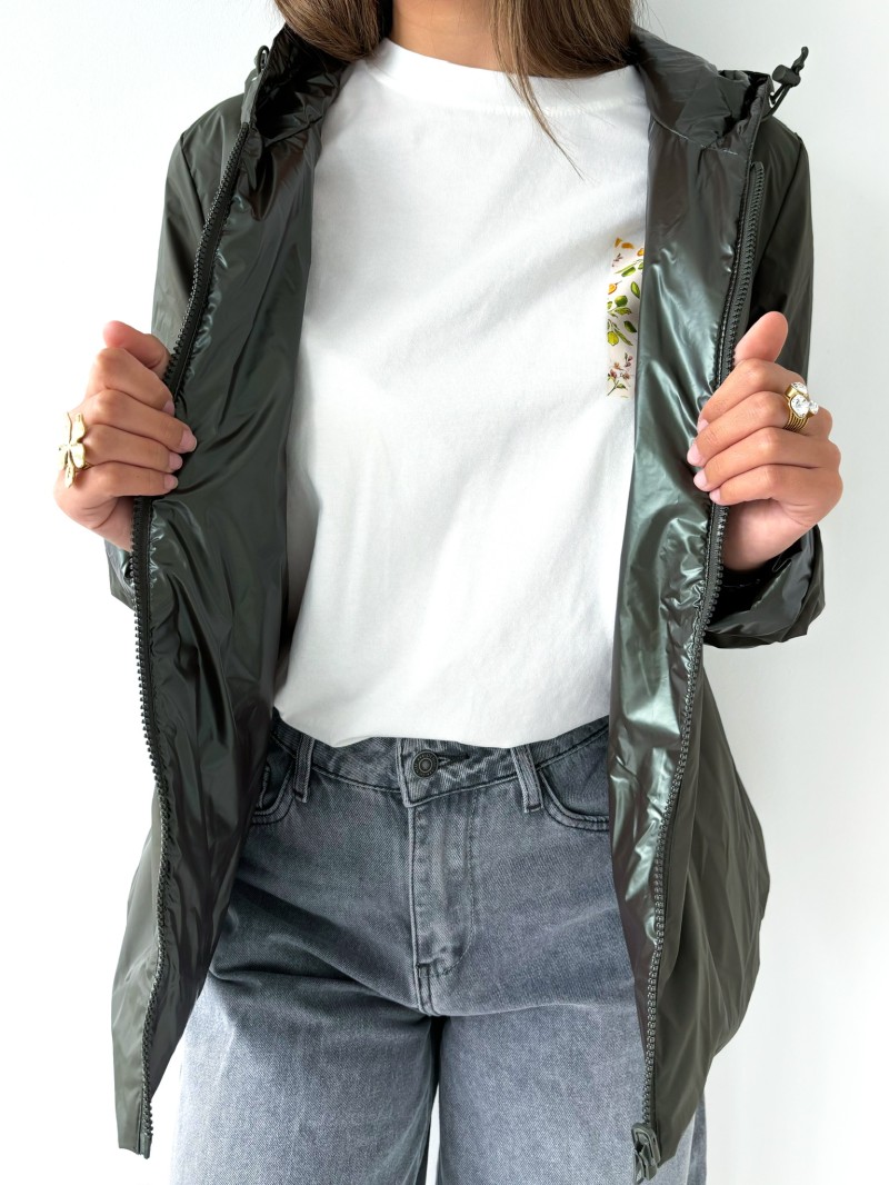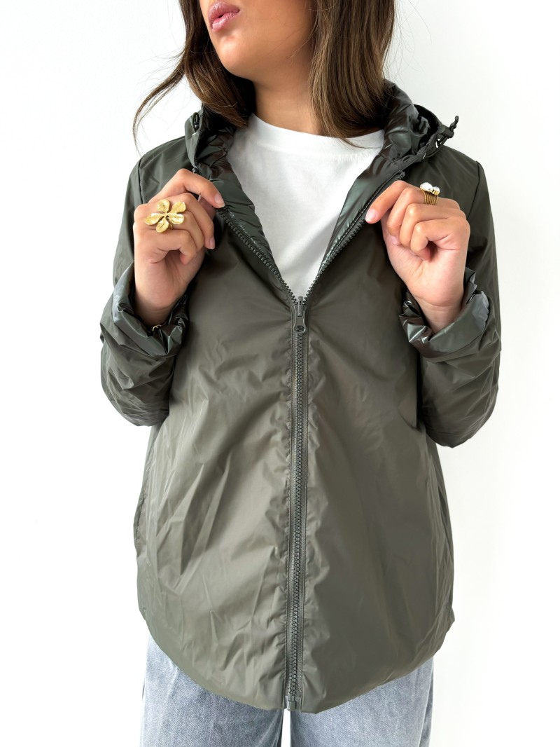 Kurze, wendbare Regenjacke mit Kapuze (wasserdicht)
