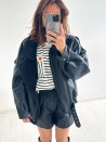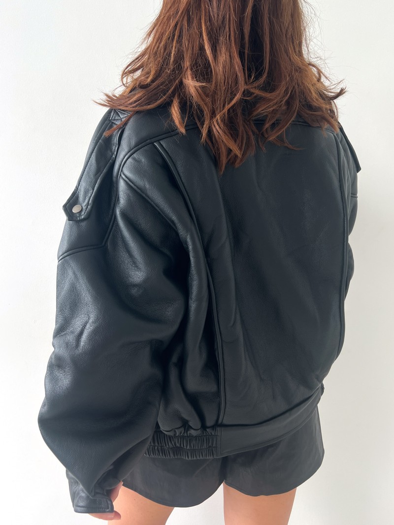 Die Jacke Maxine ist ein trendiges Kleidungsstück, das den Fliegerstil neu interpretiert. Sie ist aus weichem Kunstleder gefertigt und mit kuscheligem Lammfell gefüttert. Sie hält warm und sieht modern aus, sodass Sie elegant durch die Saison kommen. Ihr Oversize-Schnitt und ihre raffinierten Details machen sie zu einem unverzichtbaren Mode-Must-have.