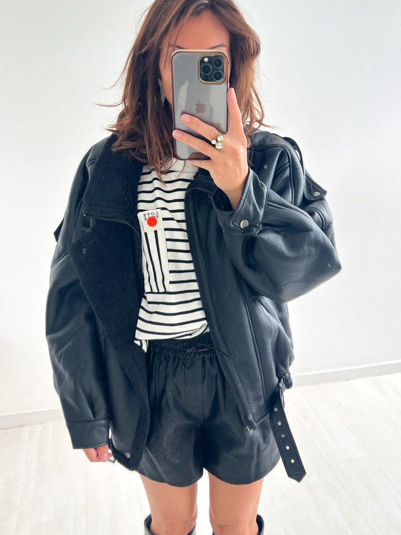 Jacke Maxine aus Kunstleder und Lammfellfutter
