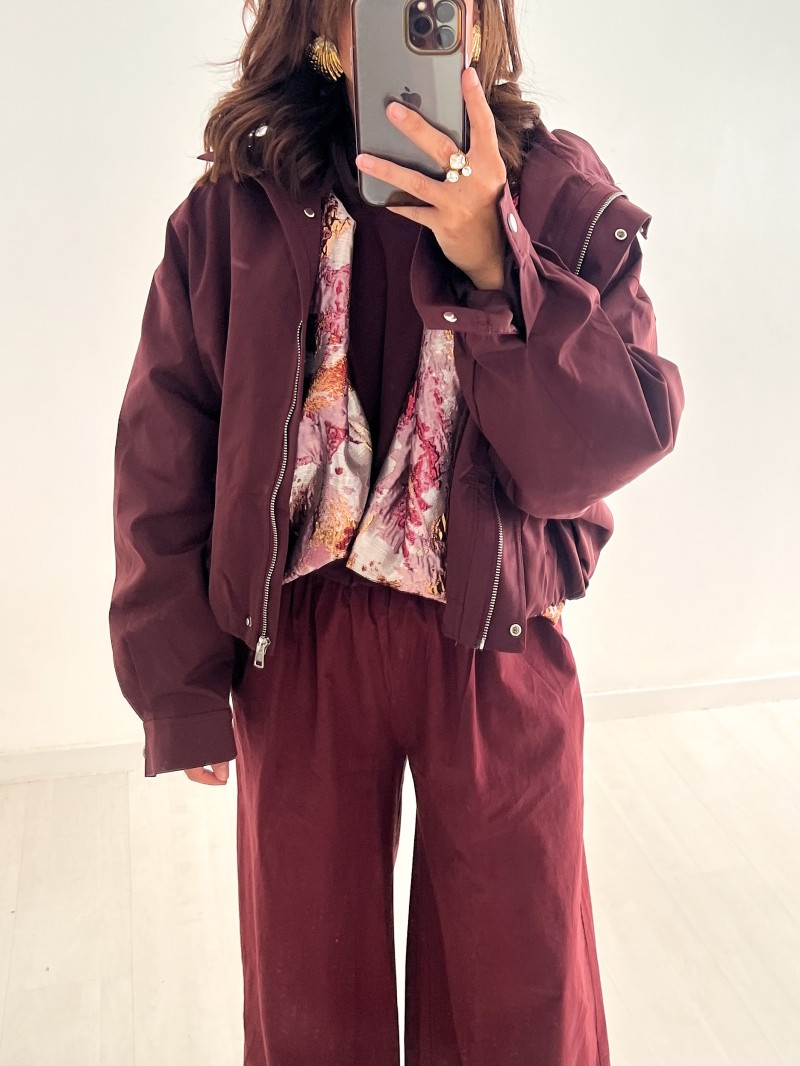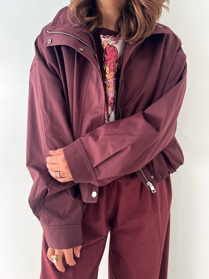 - Eigenschaften: kurzer Schnitt, Stehkragen, Reißverschluss + Druckknöpfe, lange Ärmel mit Knöpfen, elastischer Bund unten