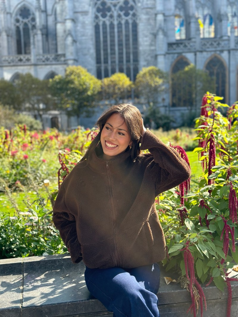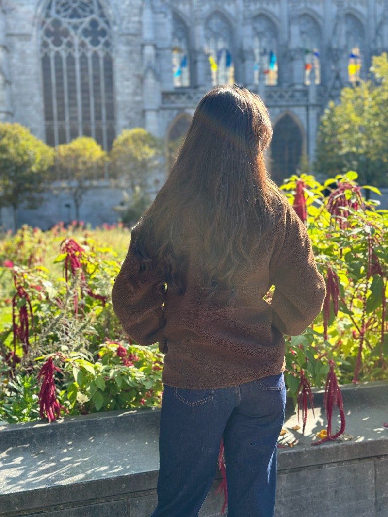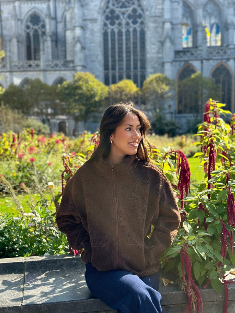 Die warme und trendige Jacke Teddy Douce ist der perfekte Begleiter, um kühle Tage stilvoll zu überstehen. Ihre Schafsfelloptik sorgt für Komfort und Modernität, egal ob Sie sie zu einer lässigen Jeans oder einem eleganteren Look tragen.