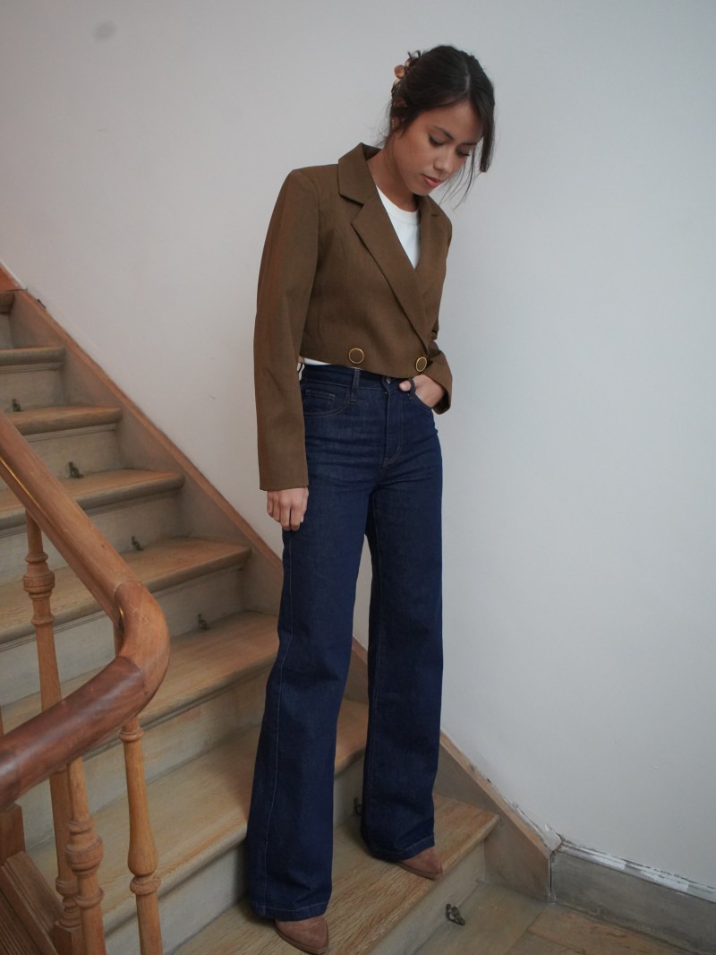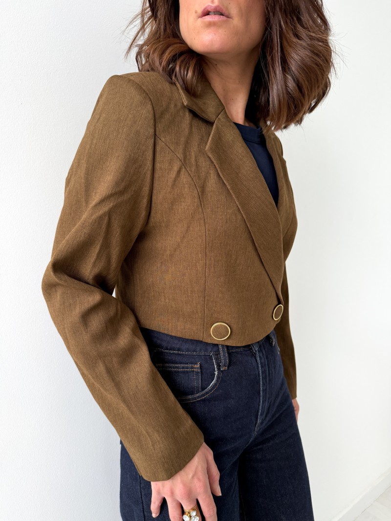 Die kurze Jacke Ella verkörpert mit ihrem strukturierten Schnitt und ihrem neu interpretierten Tailoring-Stil moderne Eleganz. Ihre beiden goldenen Ringe verleihen ihr einen schicken, zeitgemäßen Touch, der perfekt ist, um Jeans raffiniert zu kombinieren oder eine Hose mit hoher Taille zu ergänzen. Ihr fließendes, leicht satiniertes Material sorgt für einen makellosen Fall.