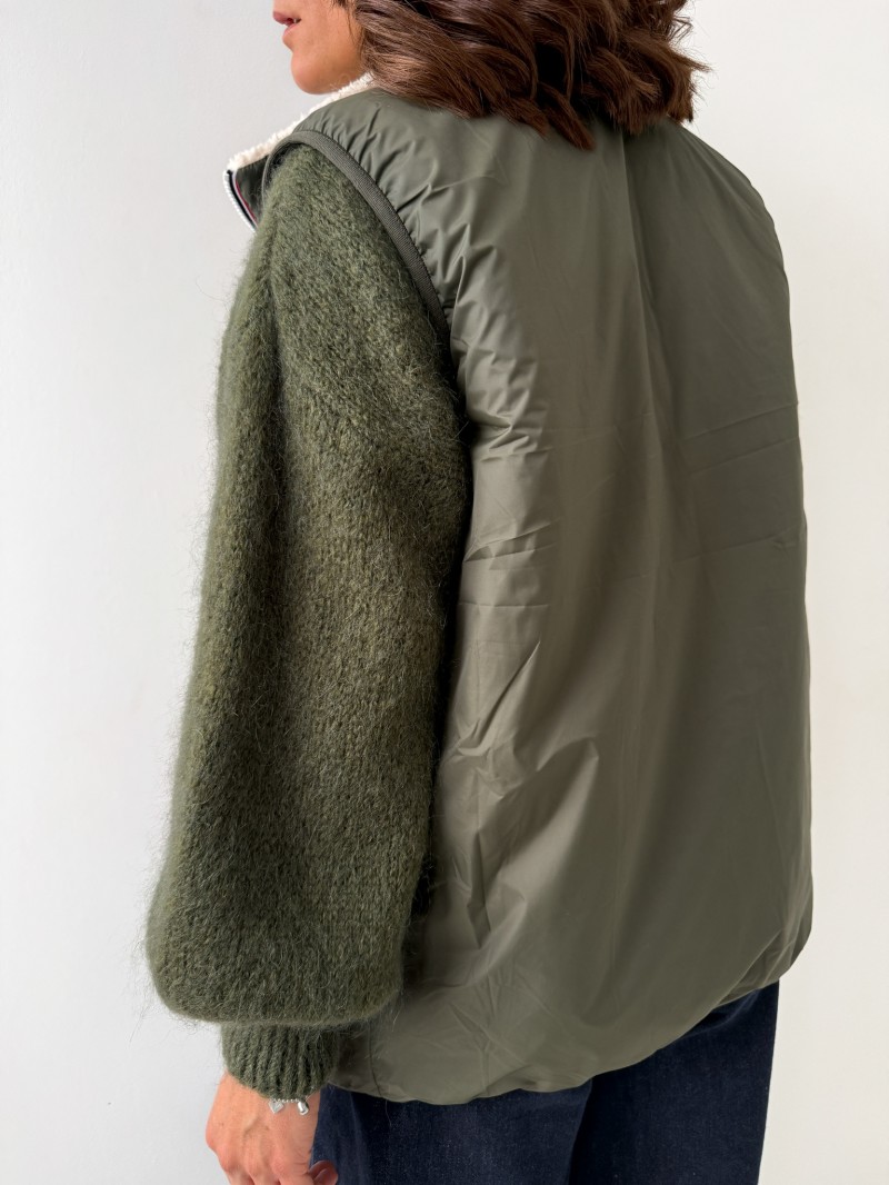 Die wendbare Regenjacke Teddy vereint Funktionalität und Stil und ist das perfekte Kleidungsstück, um elegant durch die Übergangszeit zu kommen. Die wasserabweisende Außenseite schützt vor Nässe, während die Innenseite aus Kunstfell im Schafsfell-Look unvergleichliche Wärme bietet.