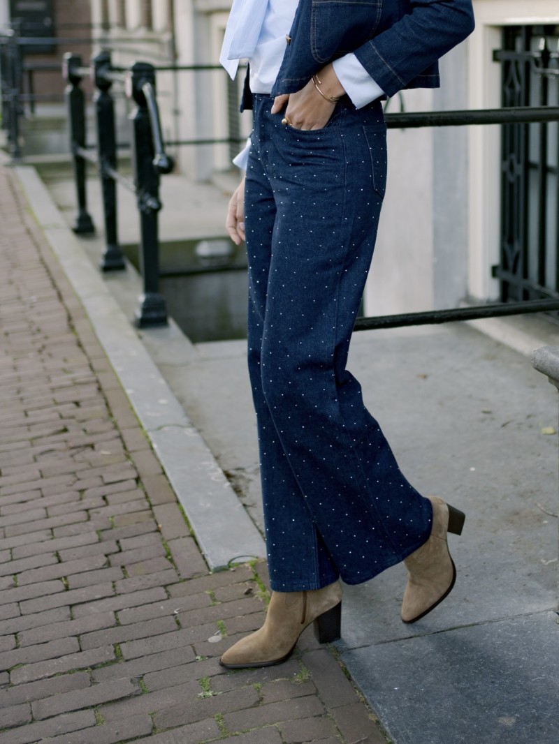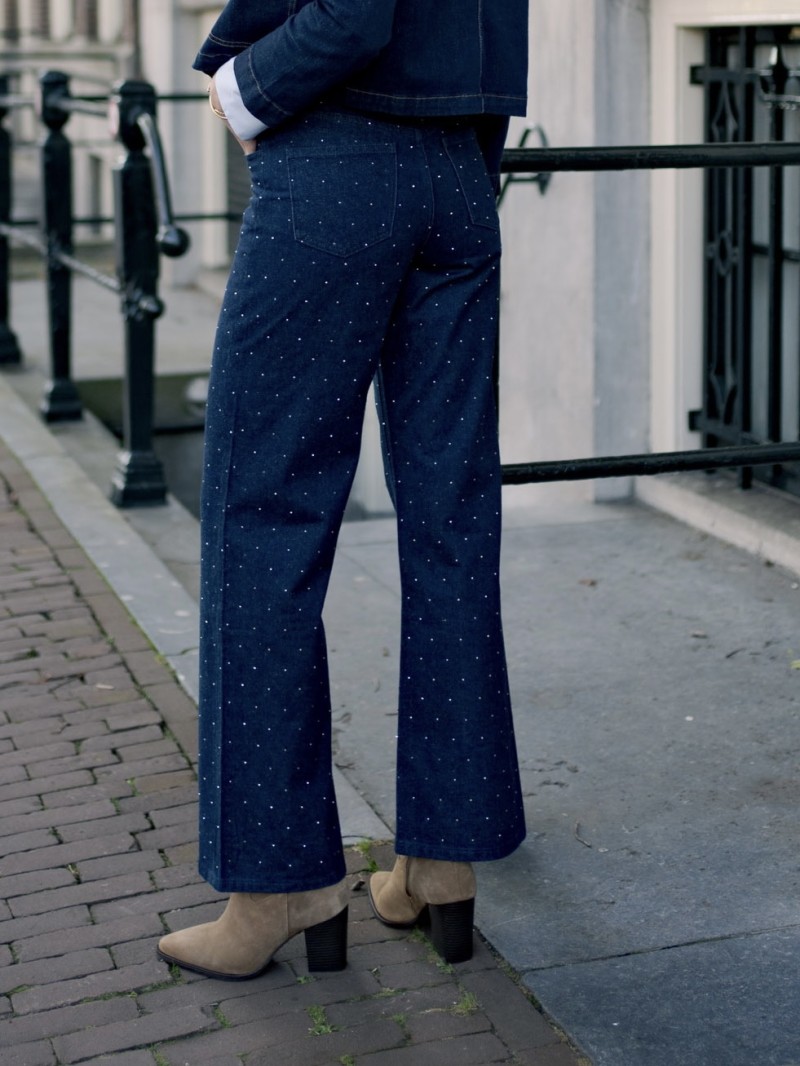 Verleihen Sie Ihrer Garderobe mit der Hose Luxor einen Hauch von Eleganz und Originalität. Dieses einzigartige Modell zeichnet sich durch seinen blauen Stoff mit glitzernden Details aus und ist perfekt für einen schicken und raffinierten Look. Der schmeichelhafte Schnitt bietet optimalen Tragekomfort und betont gleichzeitig Ihre Silhouette. Die Luxor-Hose ist in den Größen 36 bis 42 erhältlich und eignet sich ideal für besondere Anlässe oder um Ihre Alltagsgarderobe mit einem Hauch von Glamour aufzuwerten.