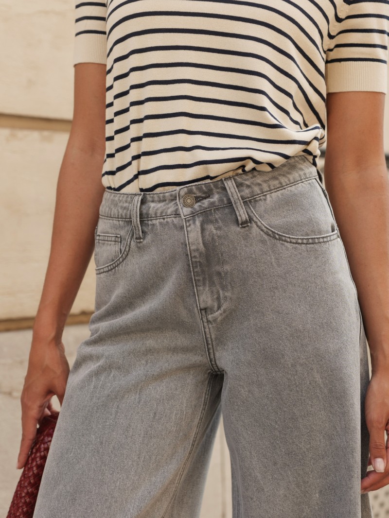 Sehr weite Jeans mit geradem Schnitt und hoher Taille. Ein Basic, neu interpretiert mit einem modernen und stilvollen Volumen.