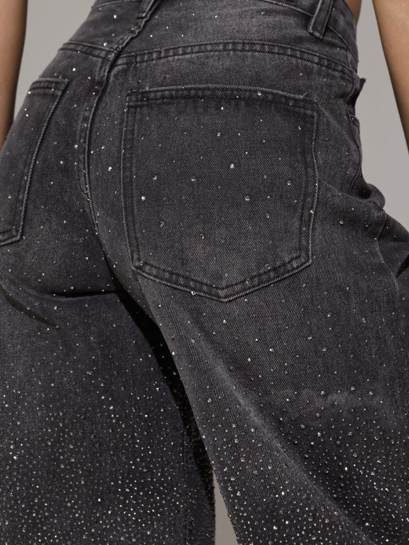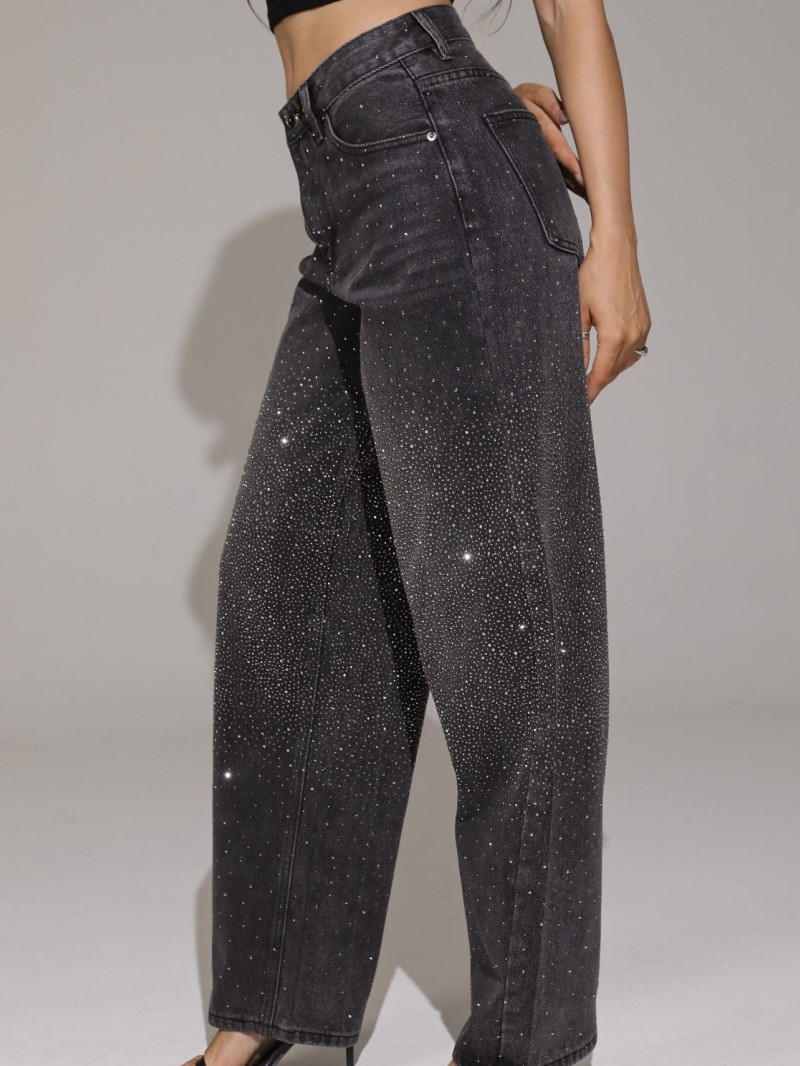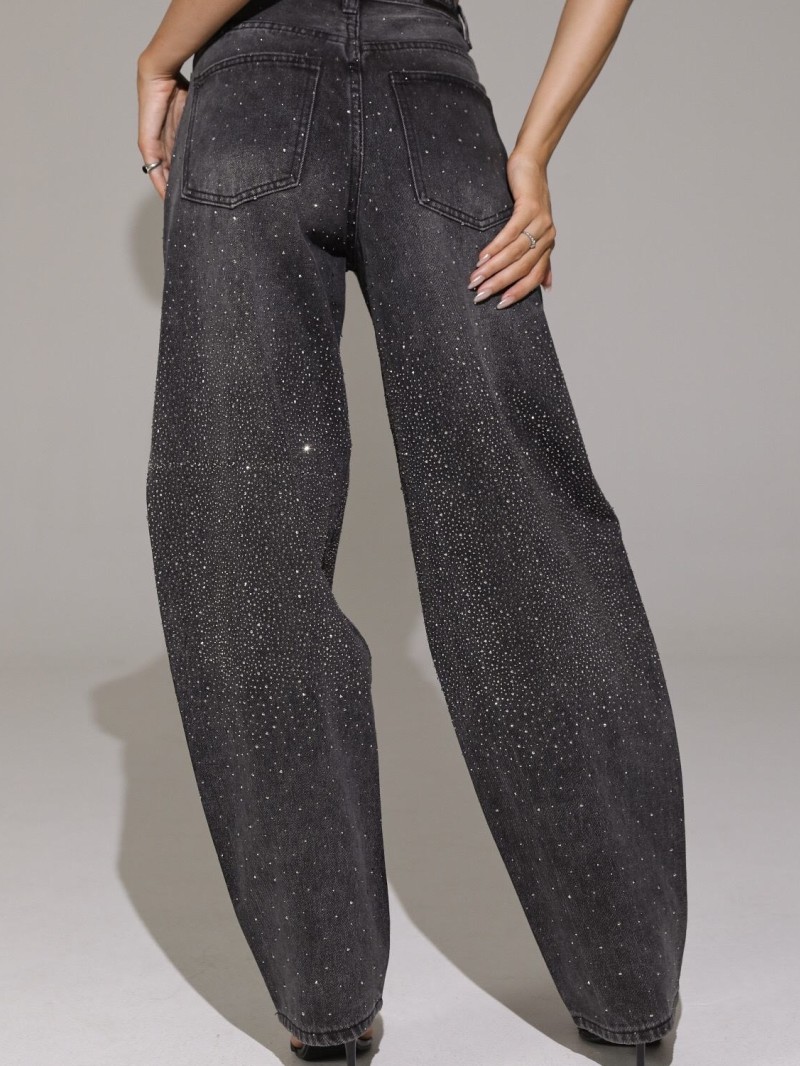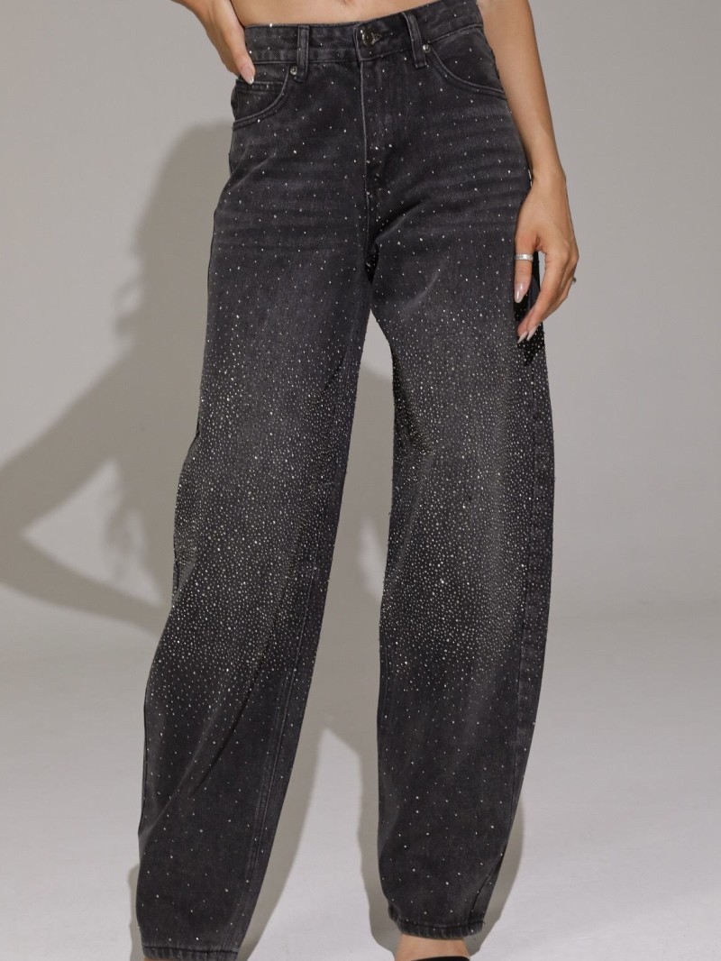 Eine Jeans, die den Unterschied macht: ultramodischer Ballonschnitt, bequemes Material und ein dezenter Regen aus Mikro-Pailletten für einen unwiderstehlichen Leuchteffekt. Sie modernisiert jedes Outfit, egal ob Sie sie mit einem Oversize-Pullover, einem Hemd oder einem einfachen Basic tragen. Einfach im Alltag zu tragen und perfekt, um mühelos einen modischen Akzent zu setzen.