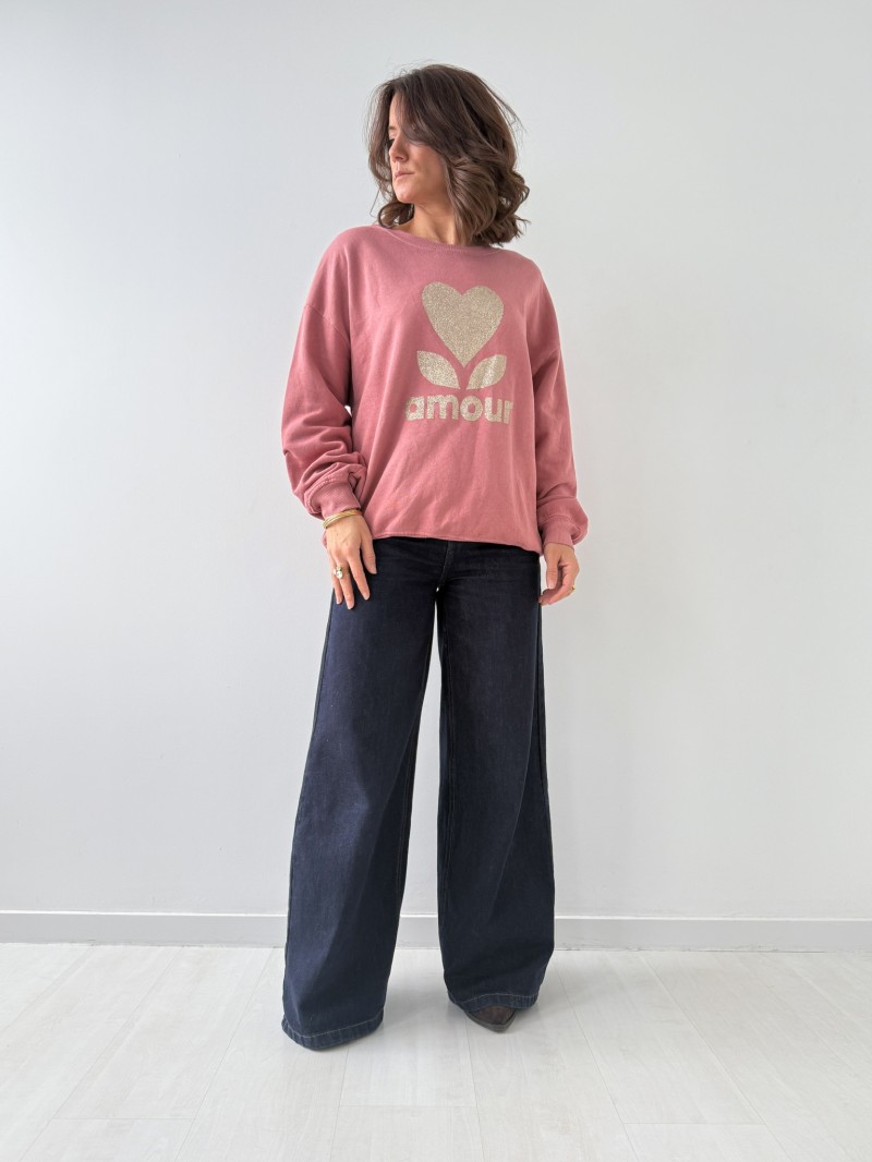 Der Sweat / Pullover Liebe ist eine Hommage an Einfachheit und Zuneigung und ist in verschiedenen Farben erhältlich, um zu jedem Stil zu passen. Mit seinem großen aufgedruckten Herz und dem Wort "Liebe" am unteren Rand fängt dieses Design die Essenz von Positivität und Zärtlichkeit ein. Hergestellt aus einem weichen, bequemen Stoff, ist dieses Sweatshirt ideal für entspannte Tage oder als tägliche Liebesbotschaft. Perfekt für einen gemütlichen Look, vereint er Mode und Komfort.