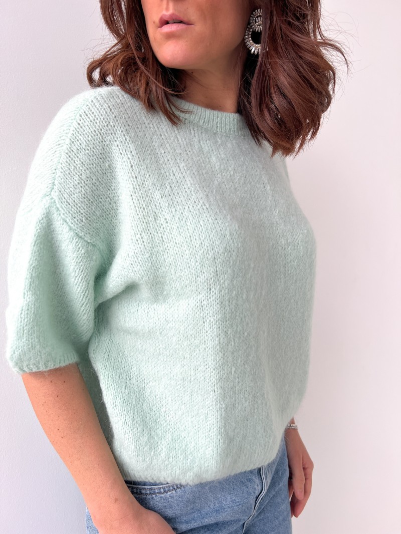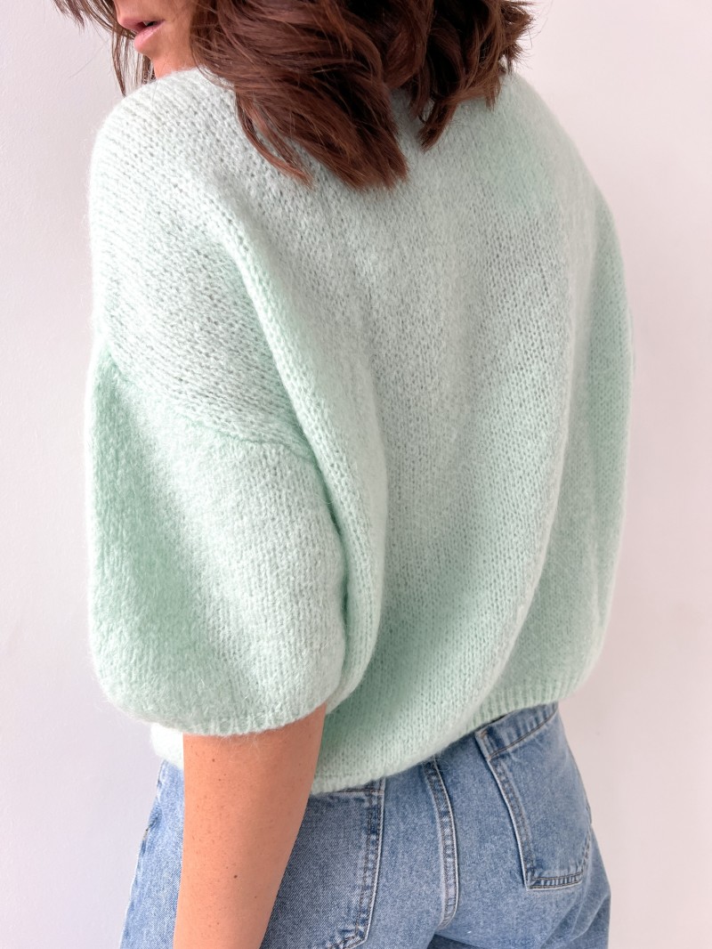 Der Pullover Alix besteht aus 44% Acryl, 26% Polyamid, 20% Kid Mohair und 10% Wolle.