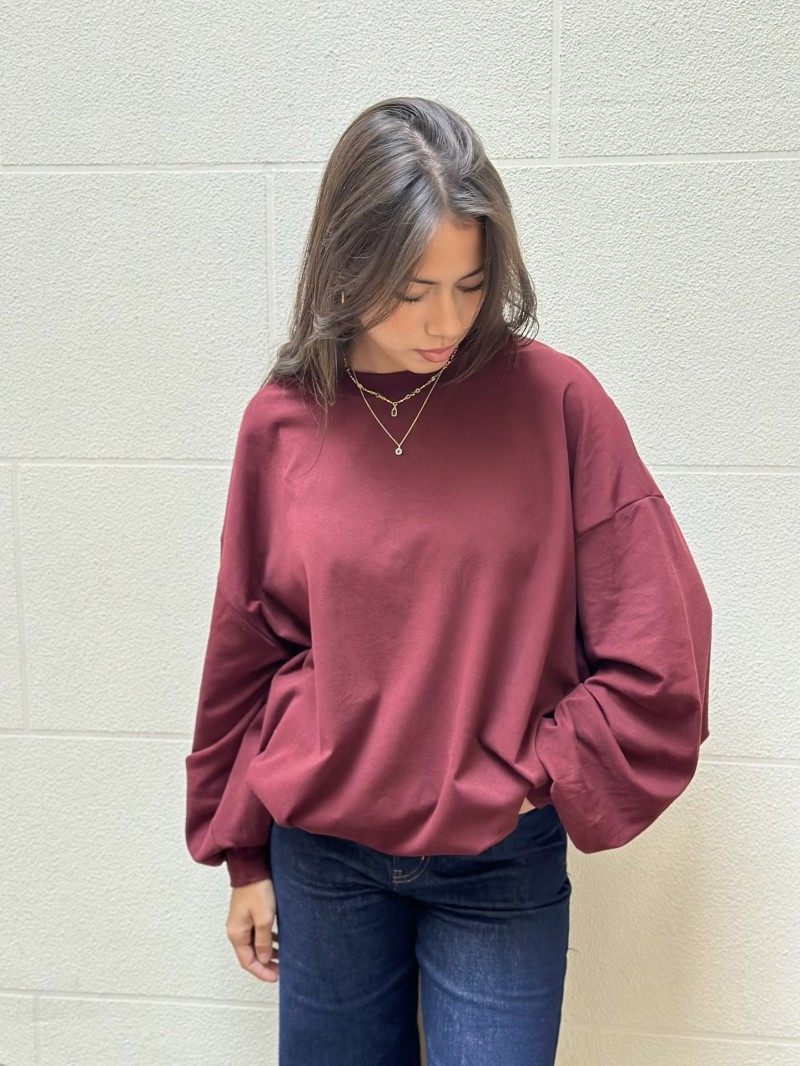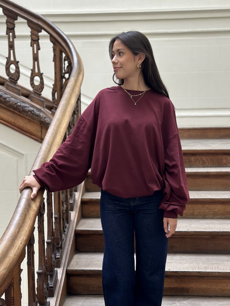 Das Sweatshirt Françoise interpretiert das klassische Sweatshirt neu und verleiht ihm mit seinem durchbrochenen Rücken einen femininen und gewagten Touch. Es ist bequem und stilvoll und besticht durch seinen lockeren Schnitt und die Ballonärmel, die für Volumen und einen lässigen Look sorgen. Ideal zum Tragen über einer Jeans für einen schicken Casual-Look oder über einem Satinrock für einen modernen Kontrast.