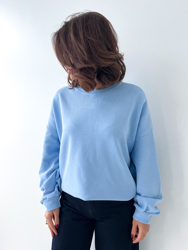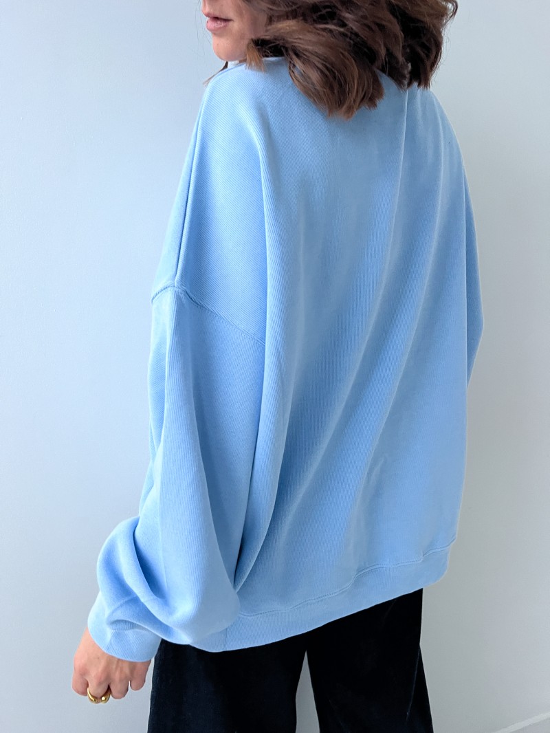 Das Sweatshirt Mila ist das Cocooning-Teil schlechthin: langer Schnitt, Oversized-Look und ultraweiches Material aus 100% Baumwolle. Er ist bequem und stilvoll und kann sowohl mit weiten Jeans als auch mit Leggings für einen perfekt beherrschten Casual-Look getragen werden. Ein Muss für alle, die weite und moderne Schnitte lieben.