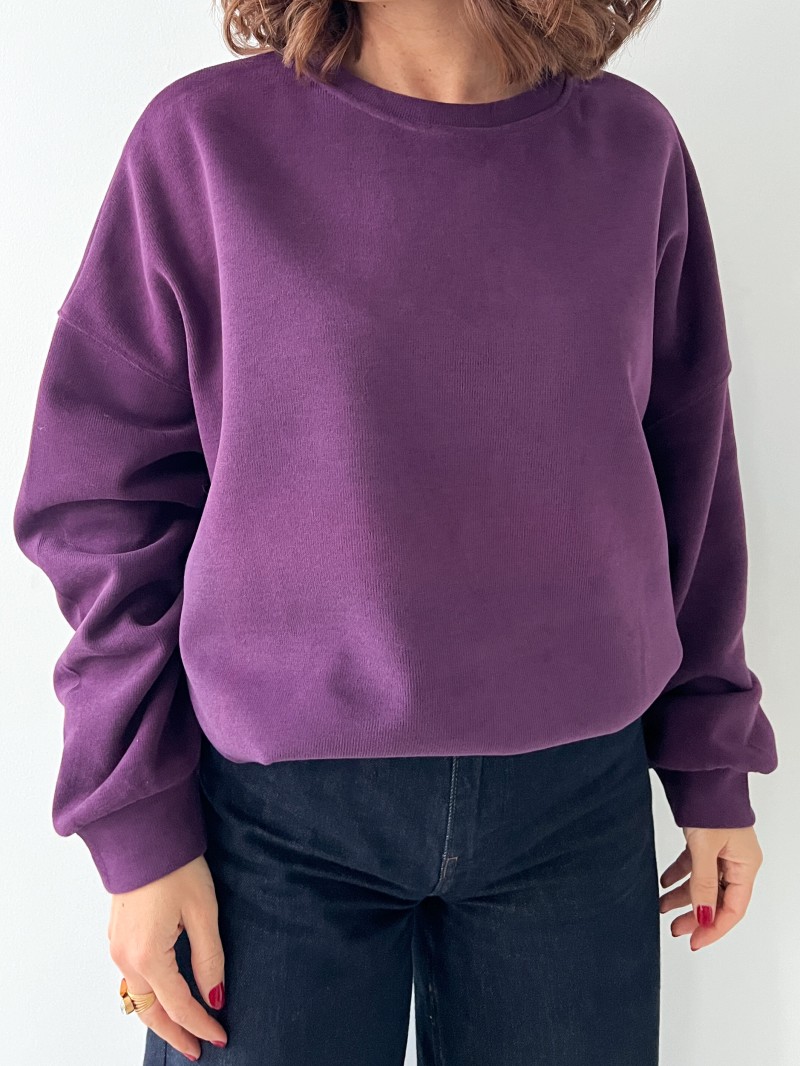 Das Sweatshirt Mila ist das Cocooning-Teil schlechthin: langer Schnitt, Oversized-Look und ultraweiches Material aus 100% Baumwolle. Er ist bequem und stilvoll und kann sowohl mit weiten Jeans als auch mit Leggings für einen perfekt beherrschten Casual-Look getragen werden. Ein Muss für alle, die weite und moderne Schnitte lieben.
