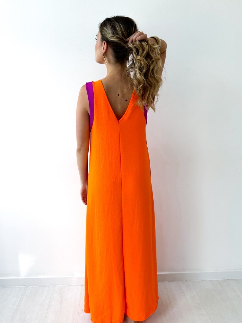 Ein ultra-stylisches langes Kleid mit kontrastreichem Design und fließendem Schnitt. Das Couture-Detail am Saum sorgt für einen strukturierten Schlitz-Effekt ohne tatsächliche Öffnung und verleiht dem Kleid einen originellen, subtilen Look. Hergestellt in Italien.