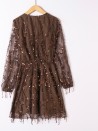 Ein strahlendes kurzes Kleid mit fließendem Fall und einem schmeichelhaften Wickelschnitt. Der leichte Stoff ist vollständig mit zarten Pailletten besetzt, die bei jeder Bewegung das Licht einfangen. Ein festlich anmutendes, feminines und raffiniertes Stück, das perfekt ist, um Abende und besondere Anlässe zum Leuchten zu bringen.