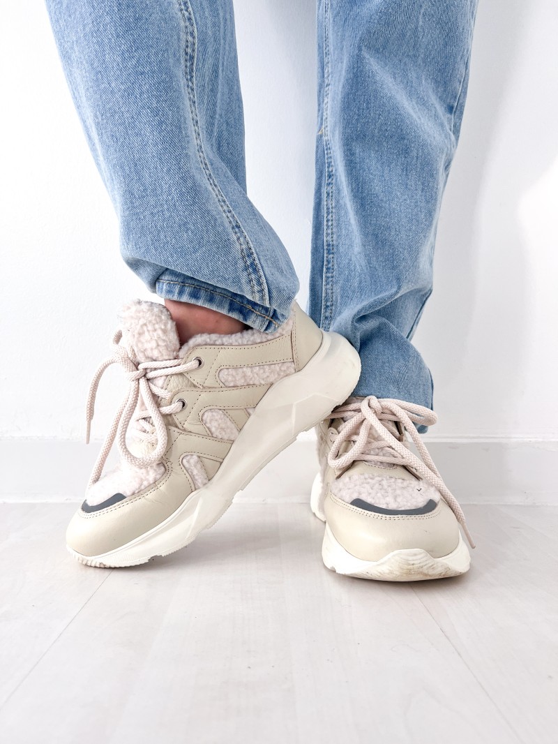 Maxi-Sneaker liegen voll im Trend!Ein Sneaker mit einer hohen/dicken Sohle wie dieses Modell ist ein Must-have in Ihrem Schuhschrank.Dieser Sneaker für Damen besteht außen aus Leder und Teddy und ist innen komplett aus Leder gefertigt.Schließen Sie sich dem Trend an!