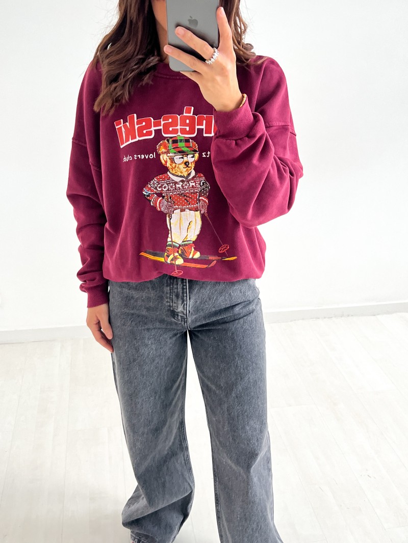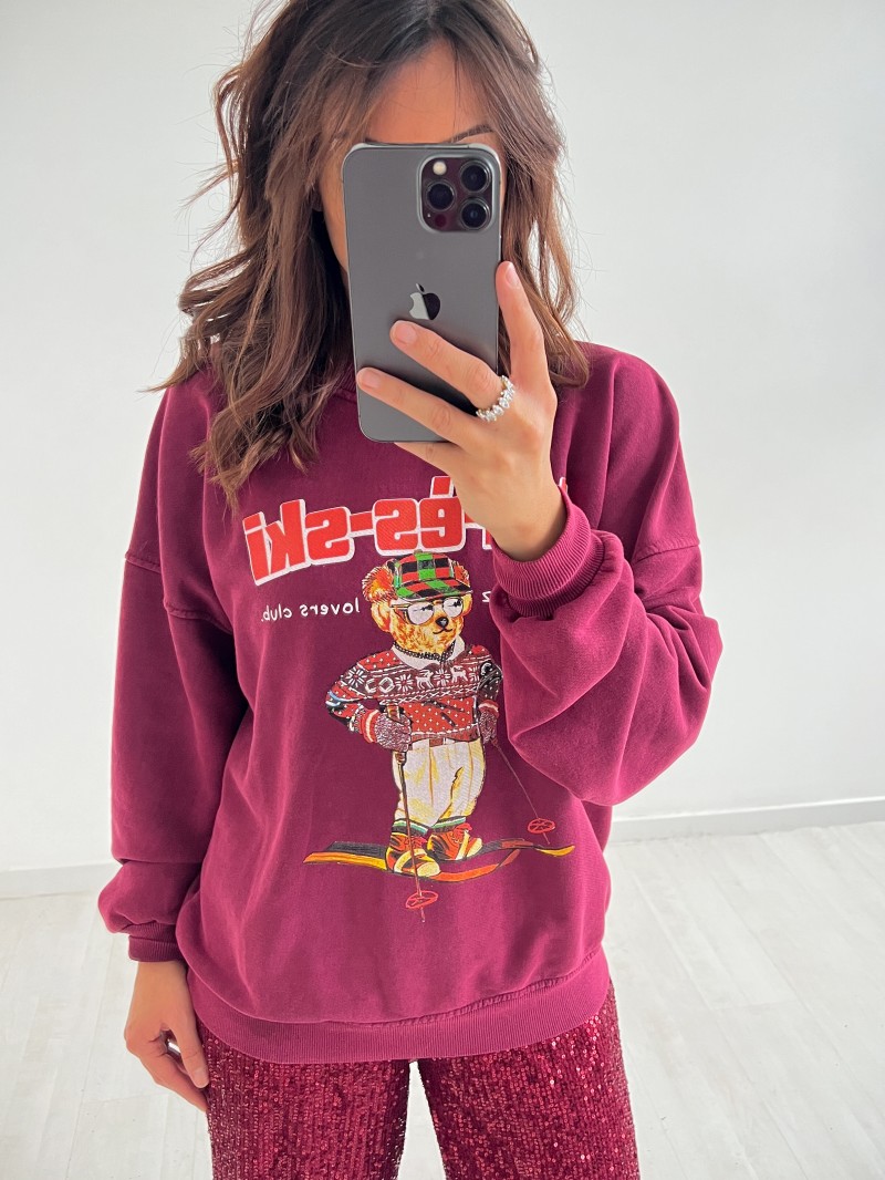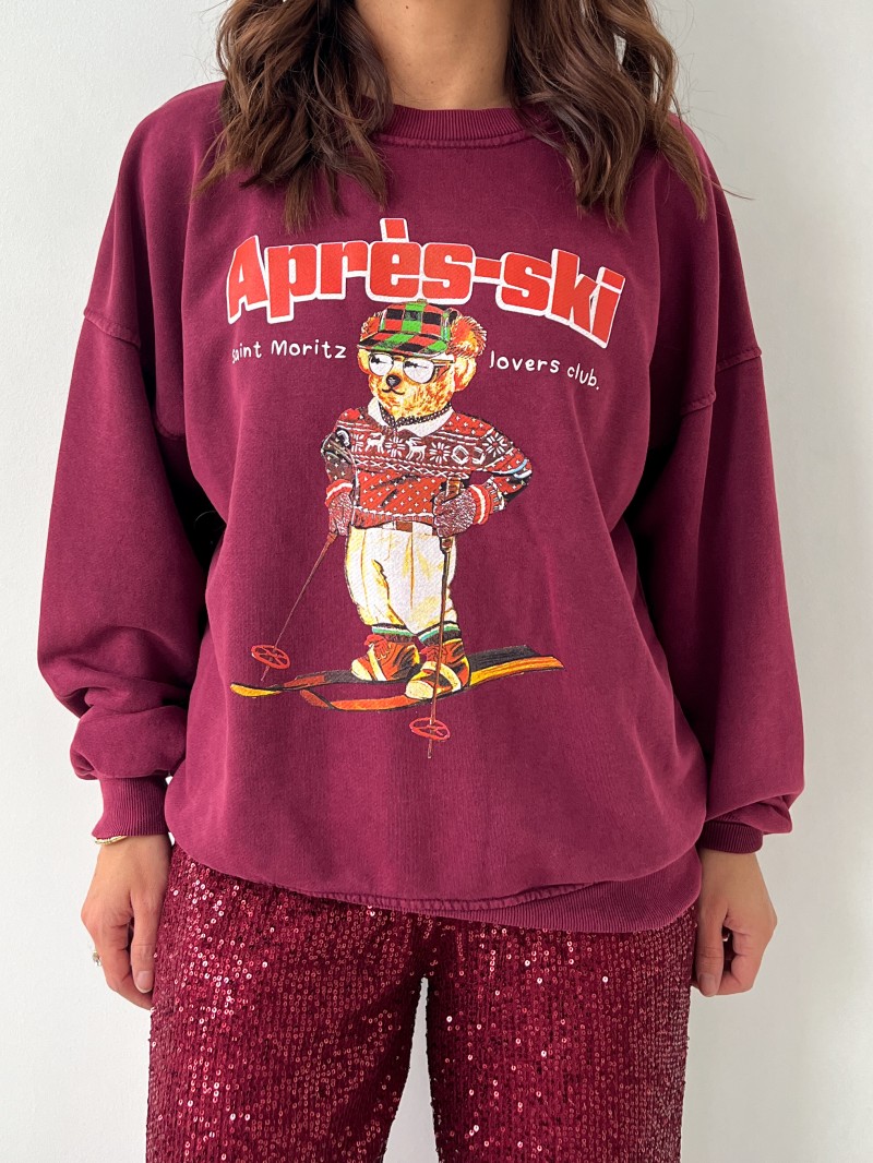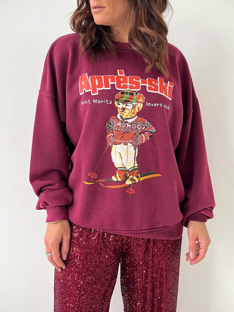 Unterstreichen Sie Ihren Stil mit unserem Après-Ski-Sweatshirt, einem Must-have für einen trendigen und lässigen Look. Es ist aus weichem, bequemem Material gefertigt und eignet sich perfekt für kühle Tage oder gemütliche Momente zu Hause. Sein verspielter Retro-Print sorgt für einen Hauch von Originalität, der nicht unbemerkt bleiben wird. Der Oversize-Schnitt und die langen Ärmel sorgen für eine fließende Passform, die ideal für alle Figurtypen ist. Dieses Sweatshirt lässt sich leicht mit Jeans oder Freizeithosen kombinieren und ist der perfekte Begleiter für einen entspannten und stilvollen Look. Einheitsgröße.
