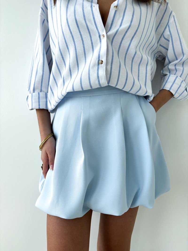 Ein fließender, strukturierter Minirock, der für sonnige Tage entworfen wurde. Sein leicht plissierter Ballon-Schnitt verleiht ihm einen schicken und originellen Look.