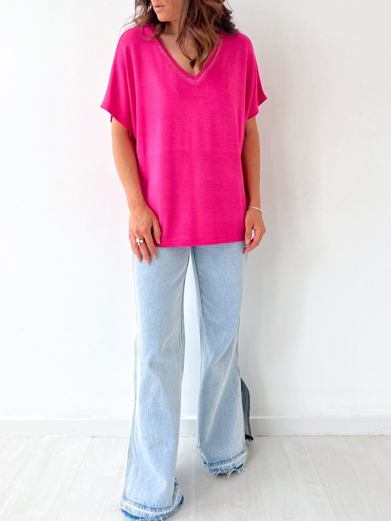 • V-Ausschnitt mit glänzendem Strickabschluss
