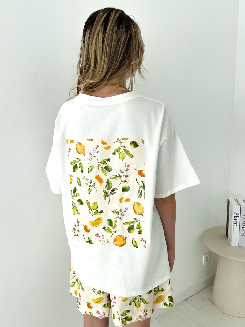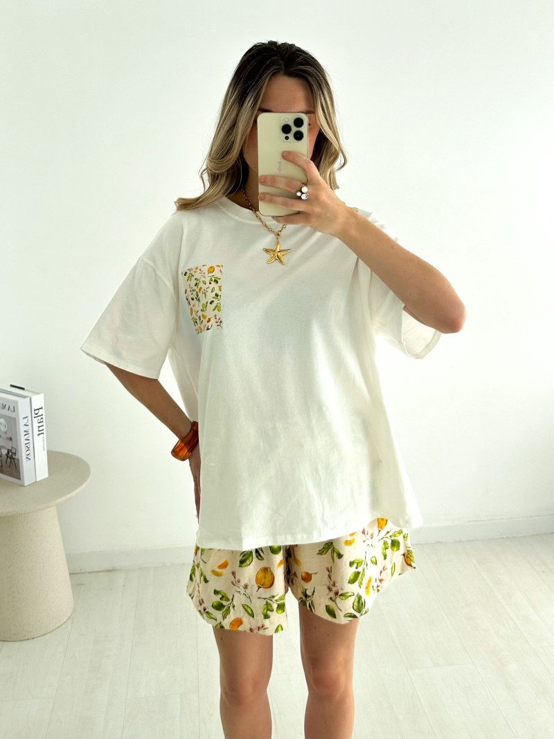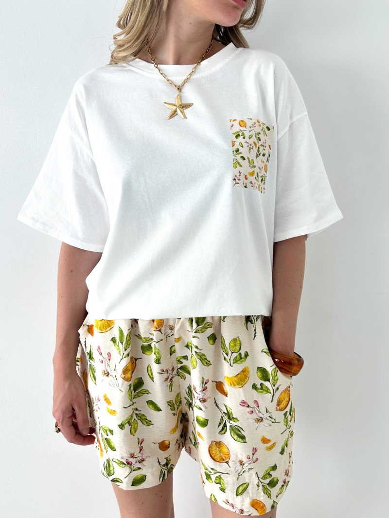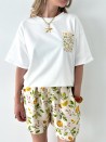 Das Ensemble Bella begleitet Sie stilvoll durch den ganzen Sommer. Es besteht aus einem bequemen T-Shirt im Oversize-Schnitt und einer fließenden Shorts mit Print und verbindet Lässigkeit mit Frische. Es eignet sich perfekt zum Entspannen zu Hause, zum Bummeln in der Stadt oder für den Urlaub und ist in mehreren fröhlichen Mustern erhältlich, die jede Stimmung widerspiegeln.