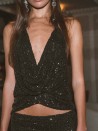 Glitzernder, rückenfreier Top mit drapiertem Vorderteil und vollständig offenem Rücken. Ein elegantes und feminines Kleidungsstück, perfekt für Ihre Abendveranstaltungen.