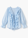 Blouse légère en coton, coupe fluide, avec volants et liens à nouer sur le devant.