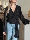 Élégante et fluide, cette blouse portefeuille met en valeur la silhouette grâce à son nœud à la taille. Ses manches légèrement transparentes et son tombé raffiné en font une pièce féminine et intemporelle.