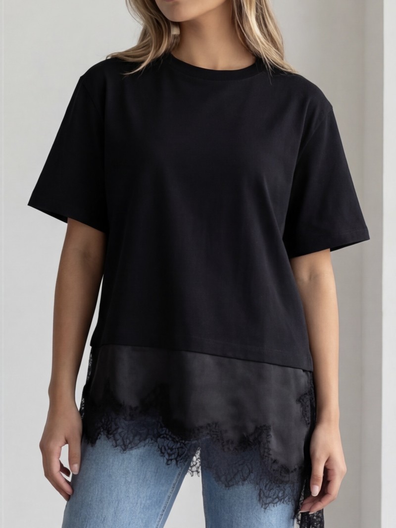 T-shirt Lucie soie et dentelle