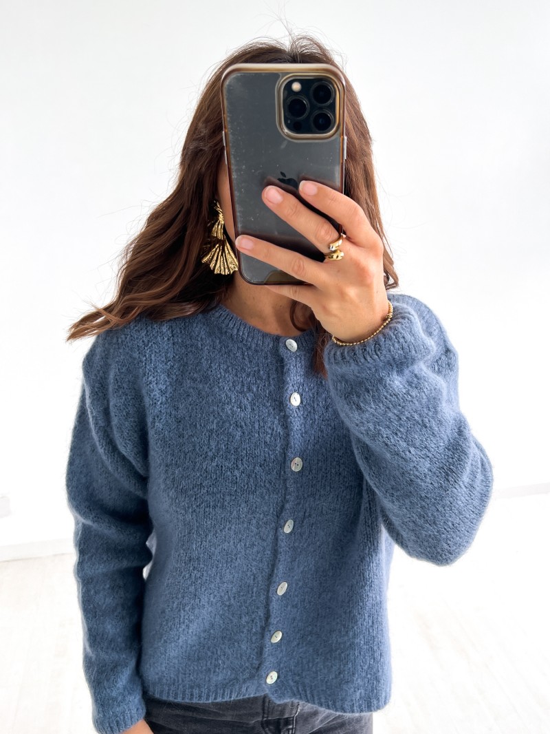 Le gilet Eline est un modèle confortable et polyvalent, adapté à diverses occasions. Son design classique avec une encolure ronde et une rangée de boutons simples sur le devant en fait un vêtement élégant et facile à porter. Ce gilet est confectionné dans une matière douce et agréable, offrant un confort optimal tout au long de la journée. Il est disponible dans une large gamme de couleurs, permettant de l’assortir facilement avec d’autres pièces de votre garde-robe. Sa taille unique et sa coupe légèrement ample s’adaptent à différentes morphologies, faisant de ce gilet un choix pratique et chic pour toutes les saisons.