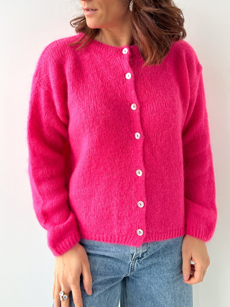 Le gilet Eline est un modèle confortable et polyvalent, adapté à diverses occasions. Son design classique avec une encolure ronde et une rangée de boutons simples sur le devant en fait un vêtement élégant et facile à porter. Ce gilet est confectionné dans une matière douce et agréable, offrant un confort optimal tout au long de la journée. Il est disponible dans une large gamme de couleurs, permettant de l’assortir facilement avec d’autres pièces de votre garde-robe. Sa taille unique et sa coupe légèrement ample s’adaptent à différentes morphologies, faisant de ce gilet un choix pratique et chic pour toutes les saisons.