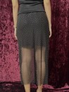 Jupe longue noire parée de délicats petits brillants, évoquant un ciel étoilé au crépuscule. Son voile transparent sur le bas lui donne une allure aérienne et raffinée, tout en gardant une belle fluidité. Sa taille élastiquée assure un confort parfait pour toutes les silhouettes. Une pièce élégante, facile à porter et idéale pour magnifier une tenue de soirée.