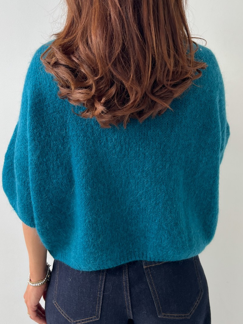 Craquez pour le Pull Alix Cosy Chic, à manches courtes et coupe ample, idéal pour allier confort et style. Disponible en fuchsia, vert émeraude, bleu électrique, rouge passion et kaki, sa texture moelleuse et son col rond ajoutent une touche moderne et élégante. Parfait avec un jean ou une jupe, il s’adapte à toutes vos envies pour un look tendance et cosy.