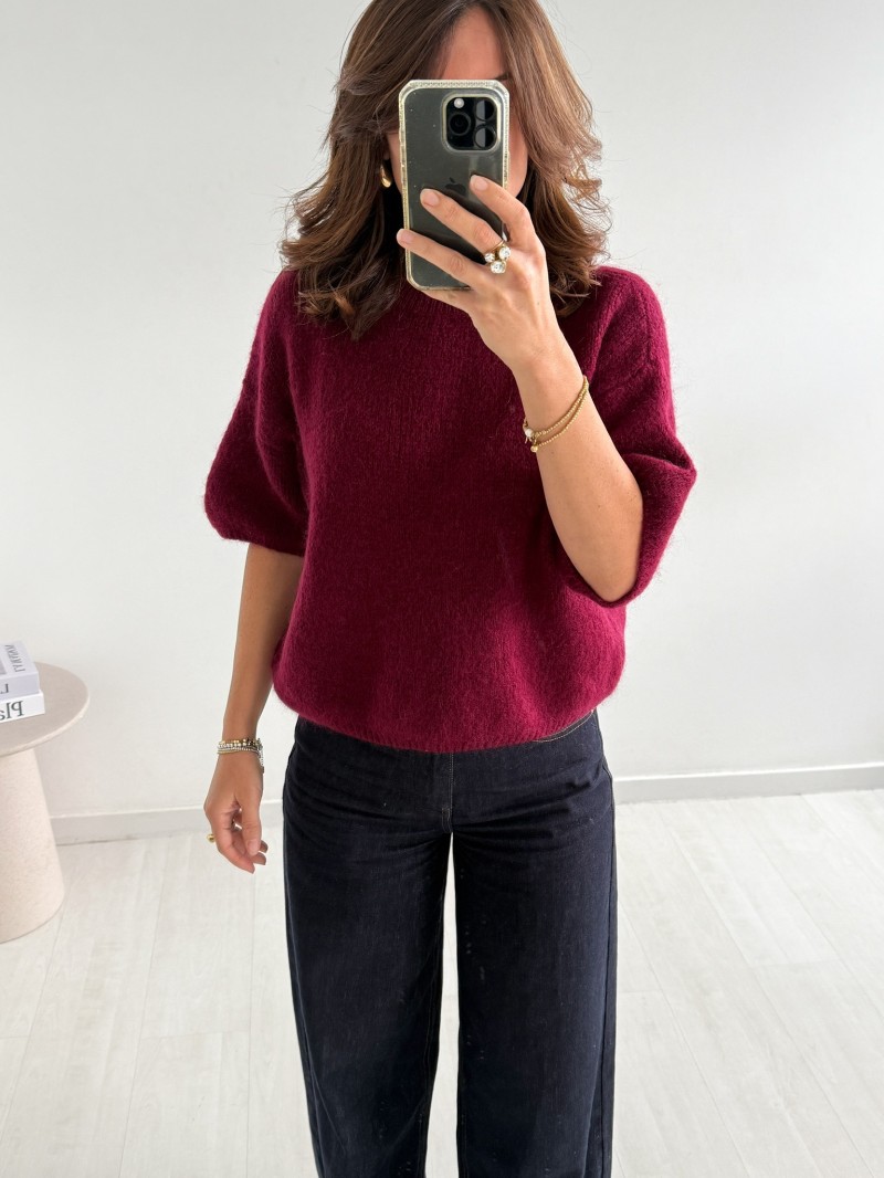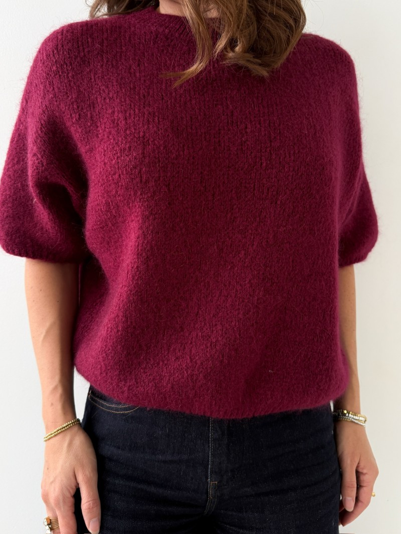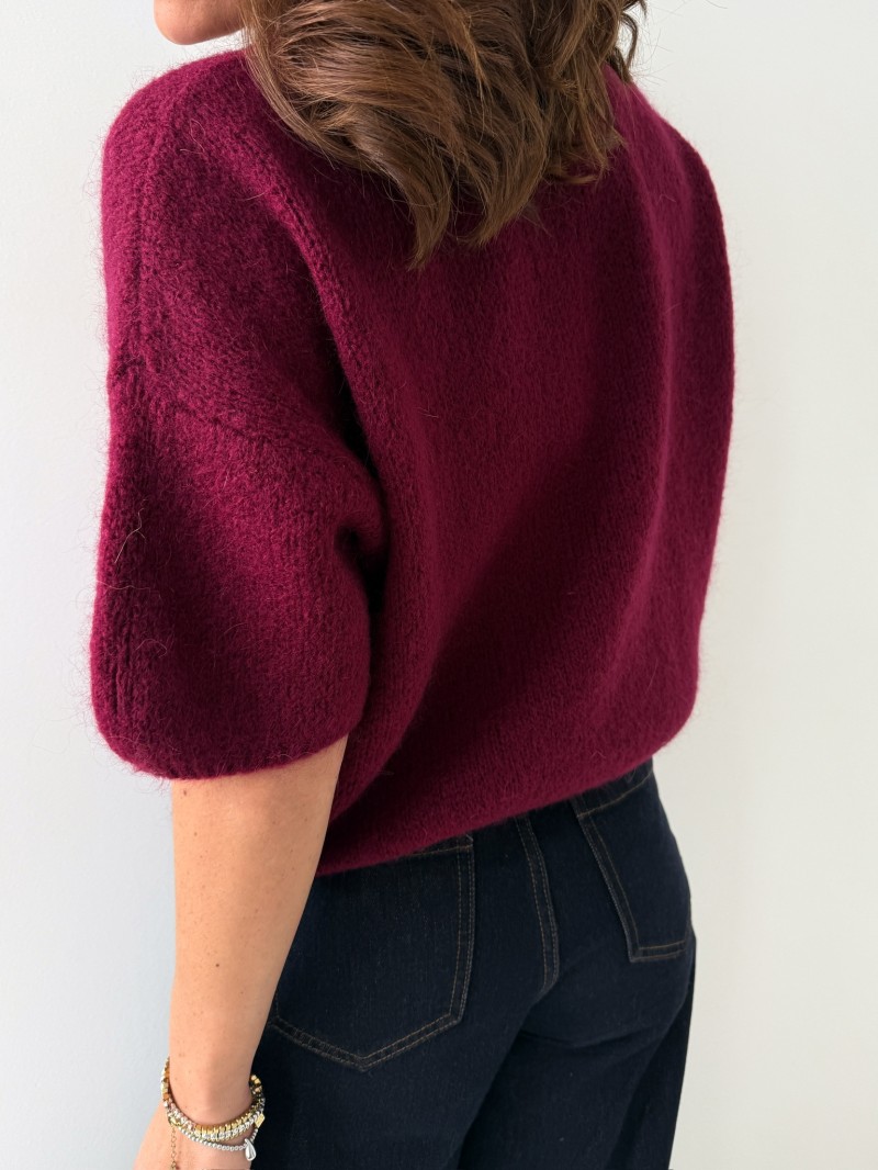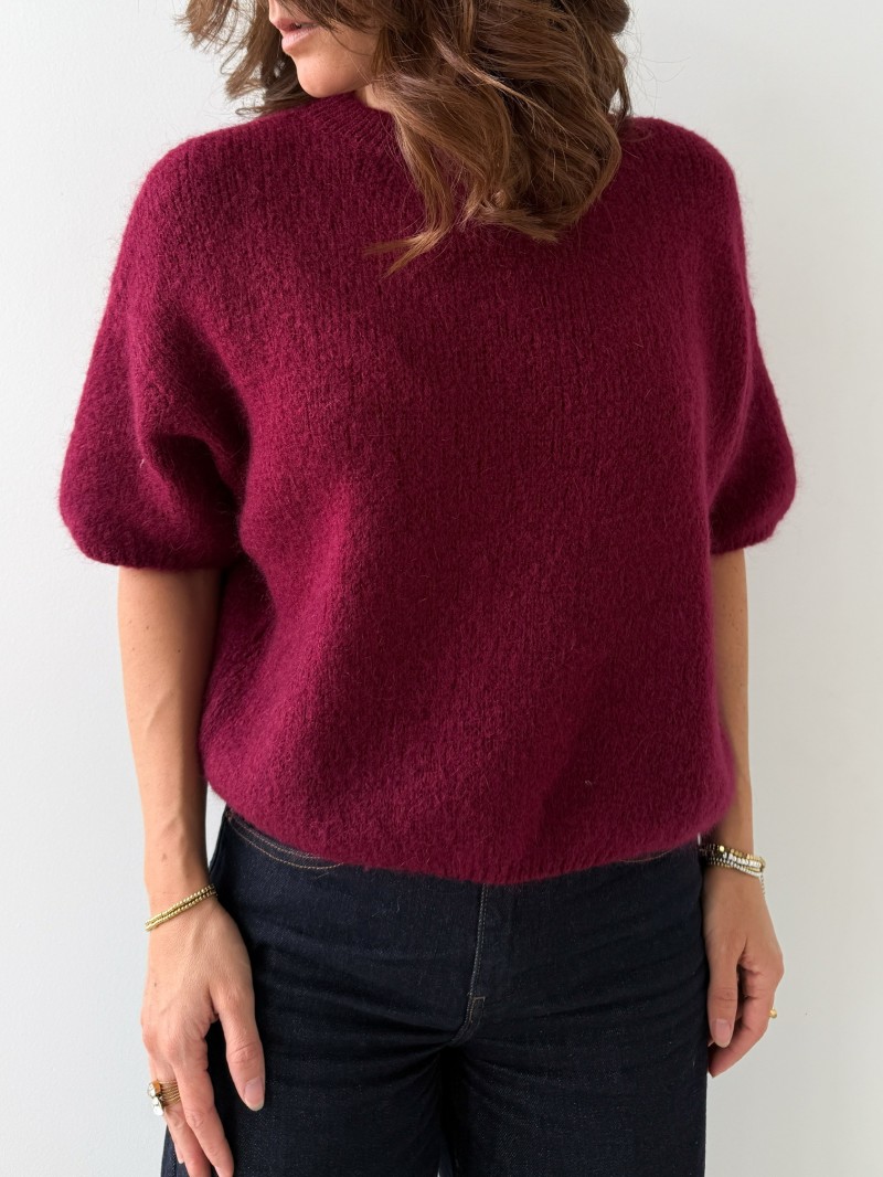 Craquez pour le Pull Alix Cosy Chic, à manches courtes et coupe ample, idéal pour allier confort et style. Disponible en fuchsia, vert émeraude, bleu électrique, rouge passion et kaki, sa texture moelleuse et son col rond ajoutent une touche moderne et élégante. Parfait avec un jean ou une jupe, il s’adapte à toutes vos envies pour un look tendance et cosy.