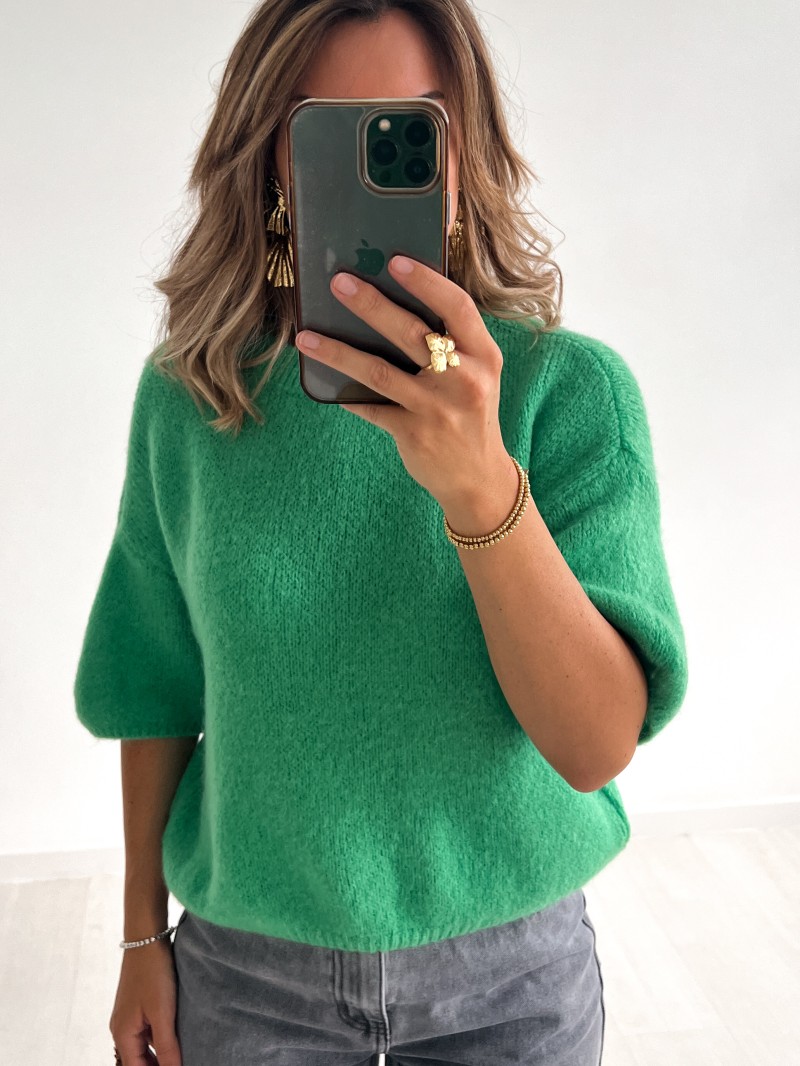 Craquez pour le Pull Alix Cosy Chic, à manches courtes et coupe ample, idéal pour allier confort et style. Disponible en fuchsia, vert émeraude, bleu électrique, rouge passion et kaki, sa texture moelleuse et son col rond ajoutent une touche moderne et élégante. Parfait avec un jean ou une jupe, il s’adapte à toutes vos envies pour un look tendance et cosy.