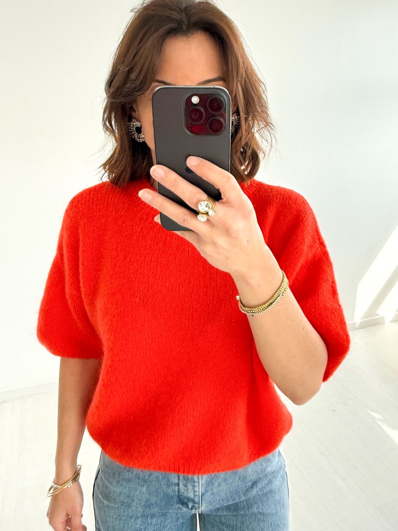 Craquez pour le Pull Alix Cosy Chic, à manches courtes et coupe ample, idéal pour allier confort et style. Disponible en fuchsia, vert émeraude, bleu électrique, rouge passion et kaki, sa texture moelleuse et son col rond ajoutent une touche moderne et élégante. Parfait avec un jean ou une jupe, il s’adapte à toutes vos envies pour un look tendance et cosy.