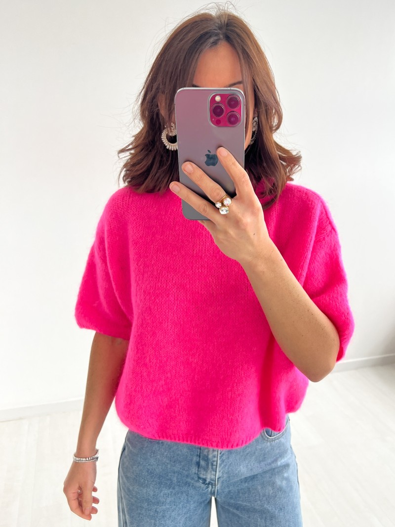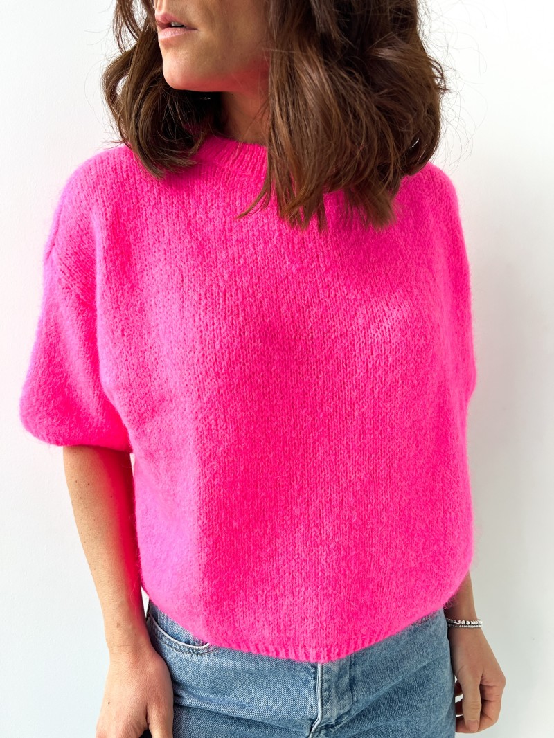 Craquez pour le Pull Alix Cosy Chic, à manches courtes et coupe ample, idéal pour allier confort et style. Disponible en fuchsia, vert émeraude, bleu électrique, rouge passion et kaki, sa texture moelleuse et son col rond ajoutent une touche moderne et élégante. Parfait avec un jean ou une jupe, il s’adapte à toutes vos envies pour un look tendance et cosy.