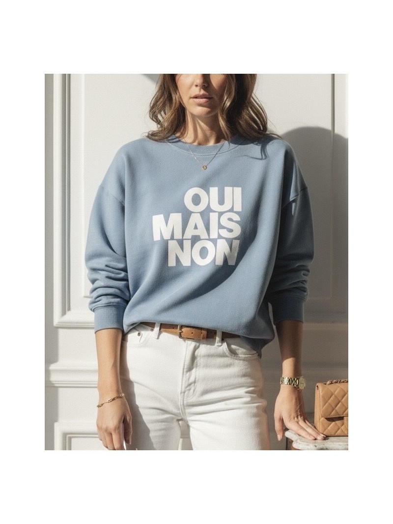 Sweat à l’allure décontractée et stylée, sublimé par son message iconique “Oui Mais Non” en finition pailletée. Une pièce facile à porter au quotidien, qui apporte une touche cool et assumée à n’importe quelle tenue.