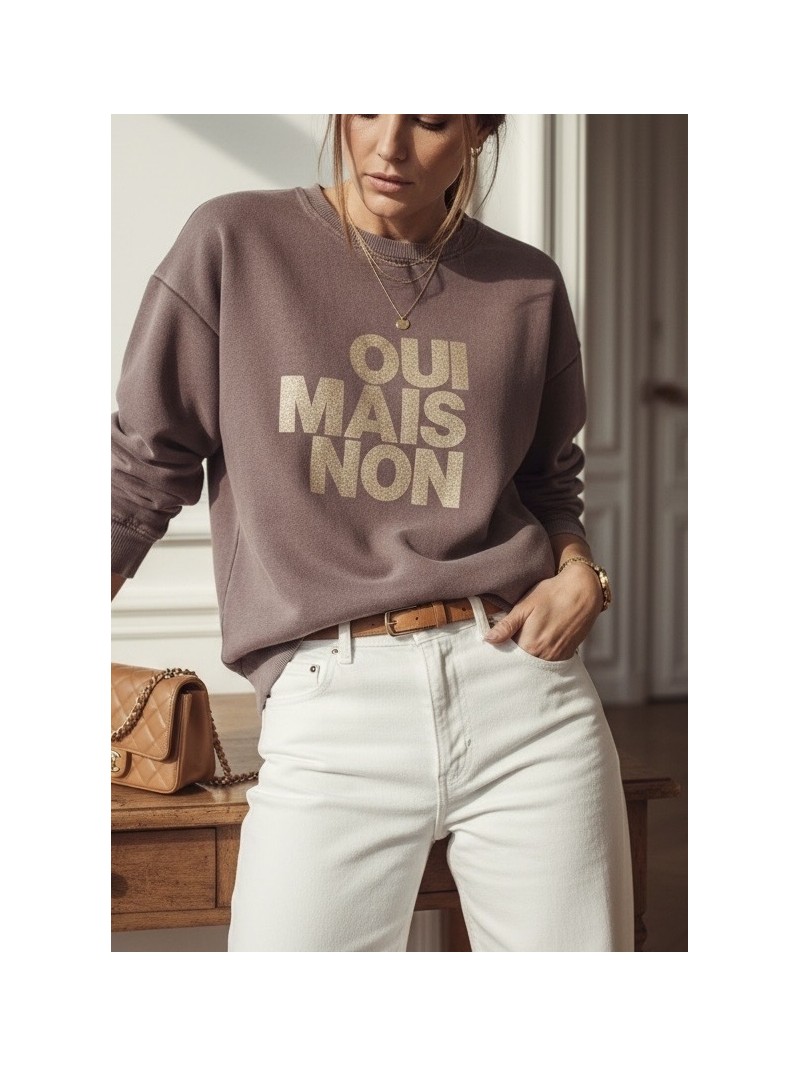 Sweat à l’allure décontractée et stylée, sublimé par son message iconique “Oui Mais Non” en finition pailletée. Une pièce facile à porter au quotidien, qui apporte une touche cool et assumée à n’importe quelle tenue.