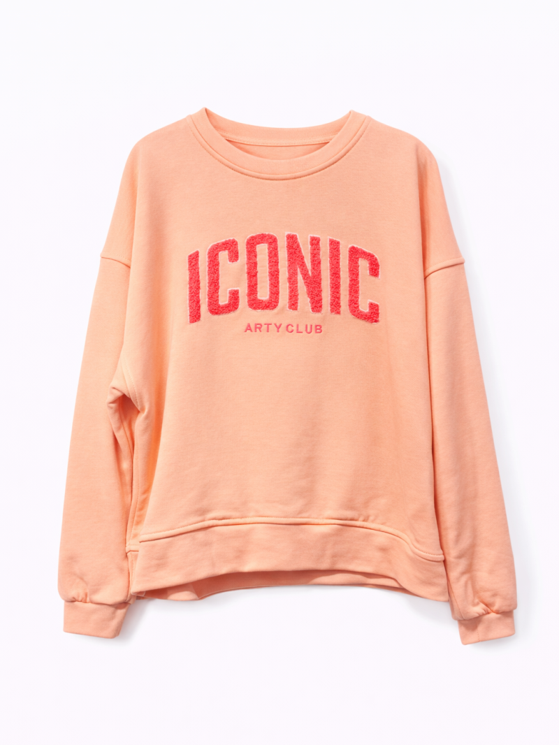 Sweat oversize confortable avec inscription « Iconic Arty Club » en relief sur le devant.