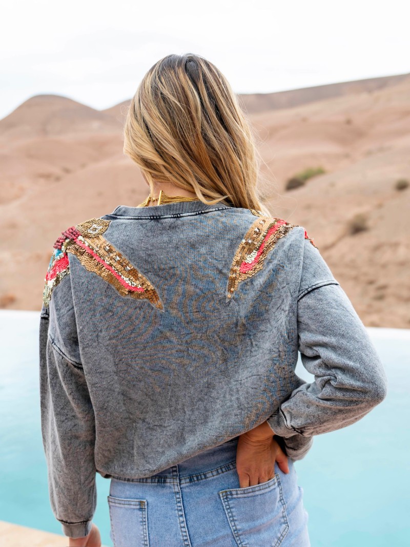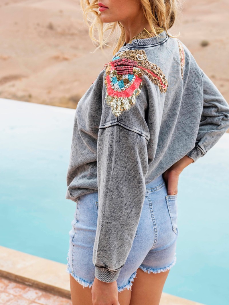 Sweat en coton à l’esprit casual revisité, sublimé par des broderies colorées sur les épaules. Une pièce confortable avec une vraie touche originale et tendance.