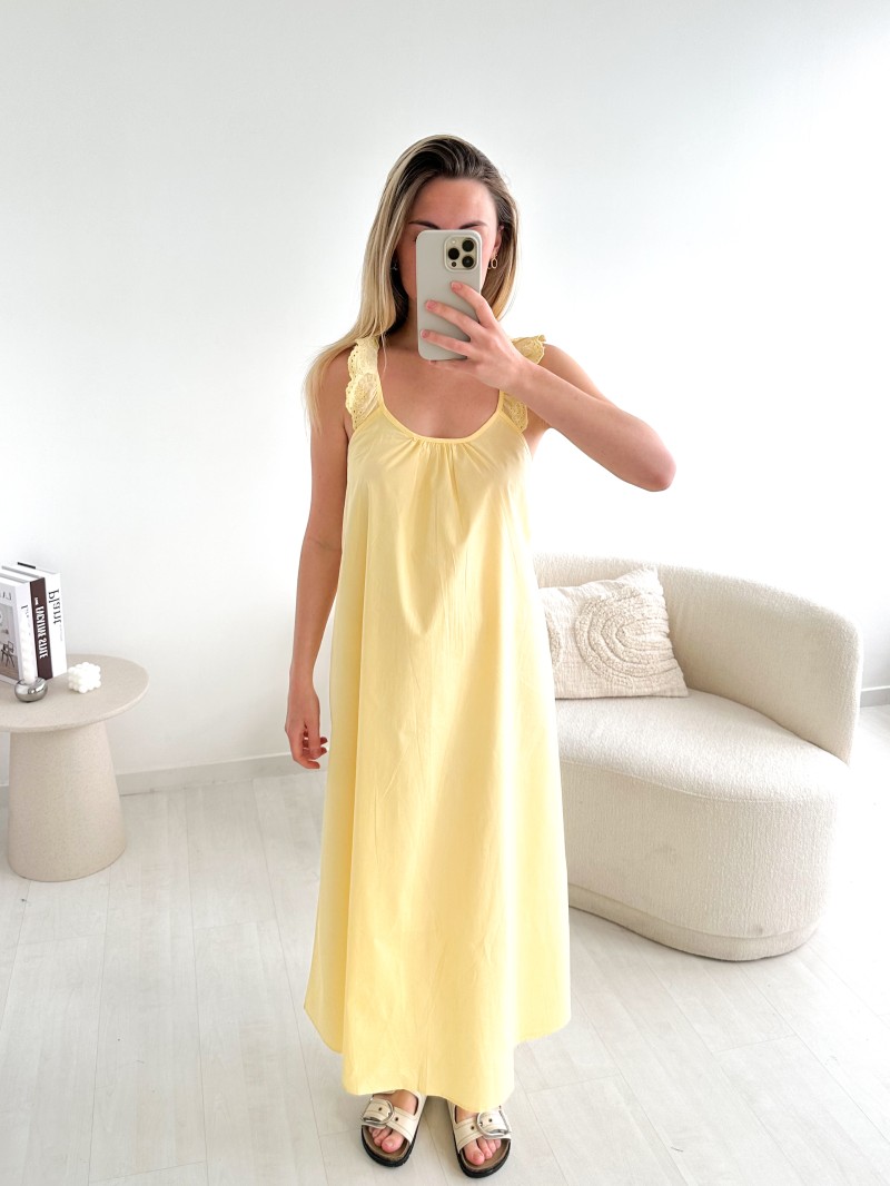 Un modèle lumineux et ultra féminin décliné en fuchsia ou jaune, parfait pour les journées estivales. La robe Solea séduit par sa coupe fluide, sa matière 100 % coton et ses bretelles travaillées en broderie anglaise.