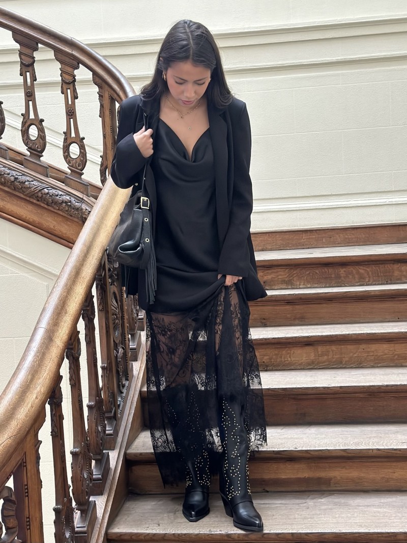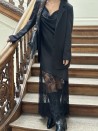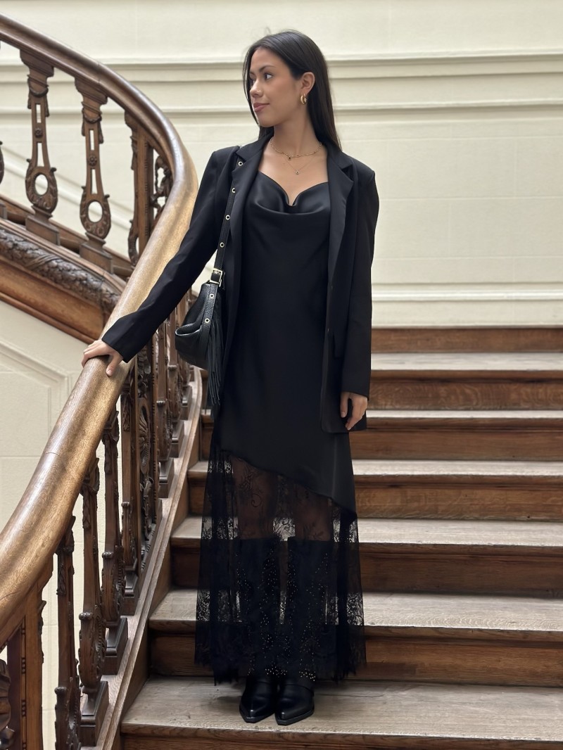 Élégante et sensuelle, la robe dentelle Mélina séduit par son effet satiné et sa transparence raffinée. Sa coupe fluide épouse délicatement les formes, tandis que le décolleté drapé sublime le port de tête. La dentelle délicate en bas de robe apporte une touche romantique, parfaite pour vos soirées ou événements. À porter seule ou avec un pull oversize pour un look plus décontracté et moderne.