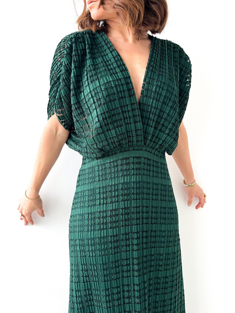 La robe Marianne est une pièce élégante et aérienne, parfaite pour les cérémonies et les soirées. Sa matière texturée ajourée apporte un charme unique tandis que son décolleté croisé et ses manches amples sculptent une silhouette féminine. La taille élastiquée offre un confort idéal et un tombé fluide très chic.