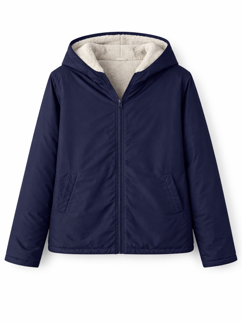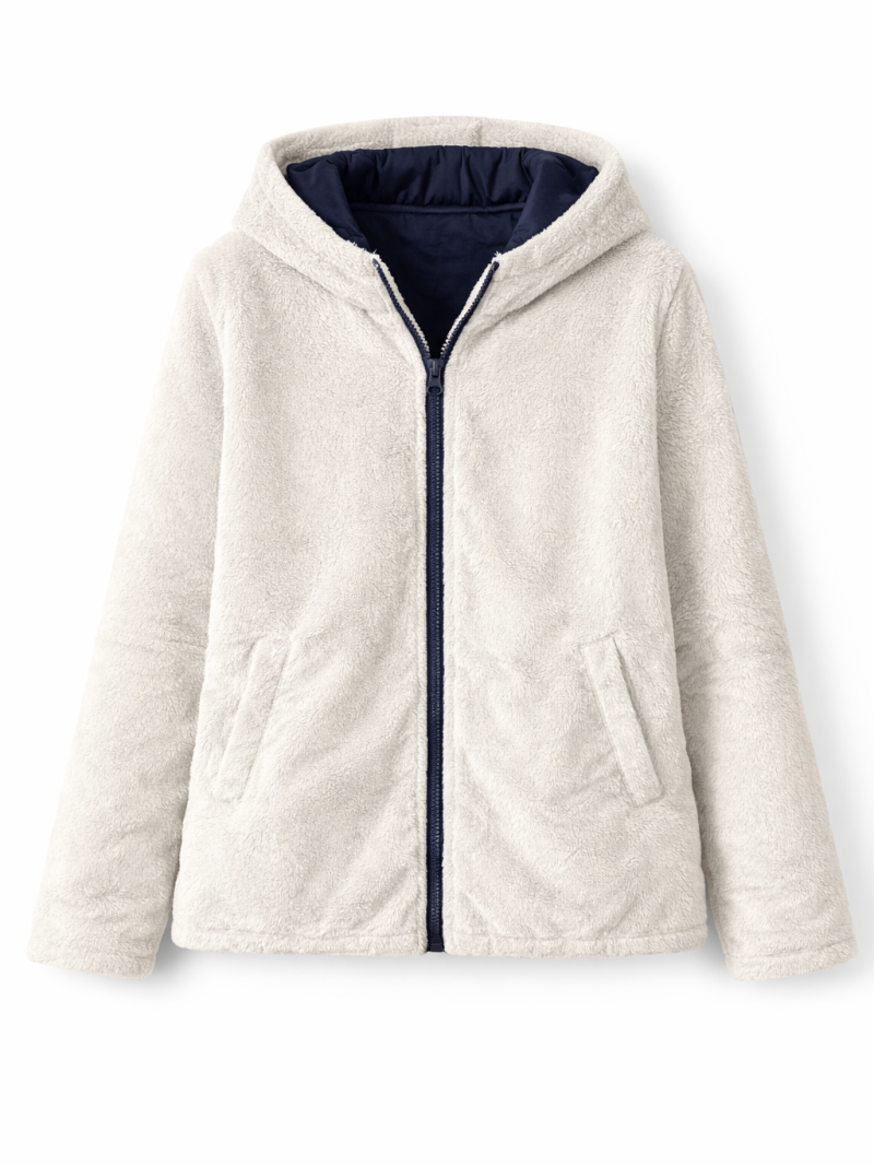 • Veste réversible : côté imperméable et côté fausse fourrure